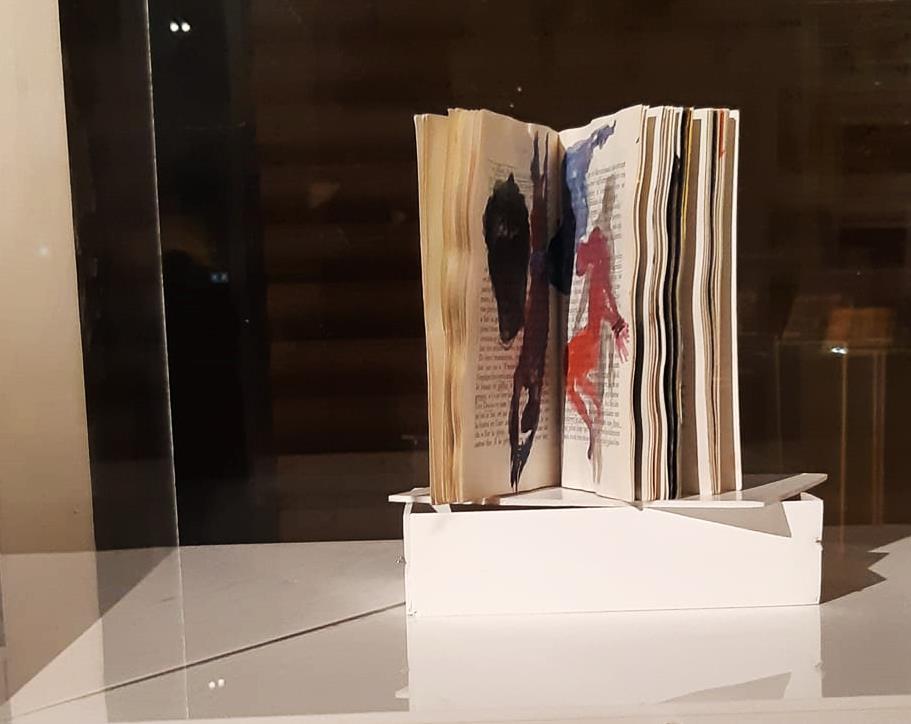 Dispositif.III Sous vitrine : récit graphique dessiné sur les pages du livre d’Henri Alleg « La Question » Année 2018