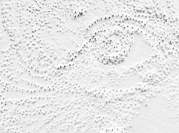Djamila Amrane Daniele Minne (1937 2017). Les Djamila. Dessin au piercing sur papier Arches (détails) 65 cm x 50 cm Année 2022