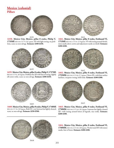 1659. Mexico City, Mexico, pillar 8 reales, Philip V, 1737MF. 1662. Mexico City, Mexico, pillar 8 reales, Ferdinand VI,