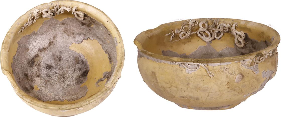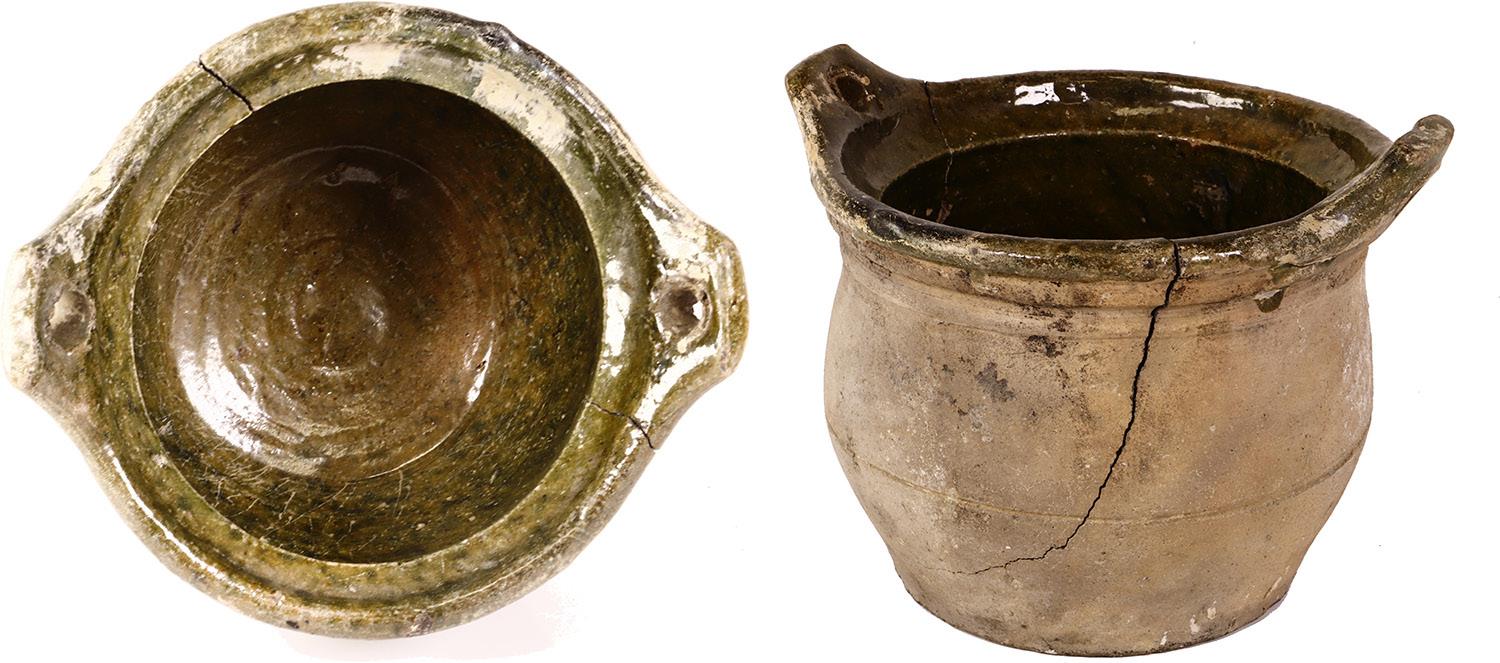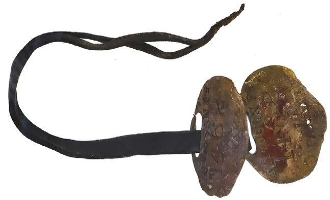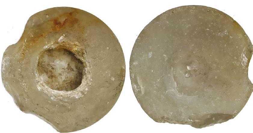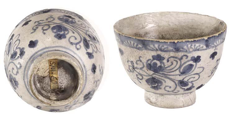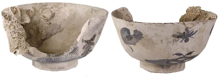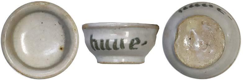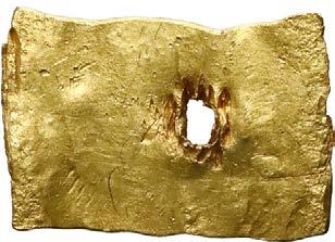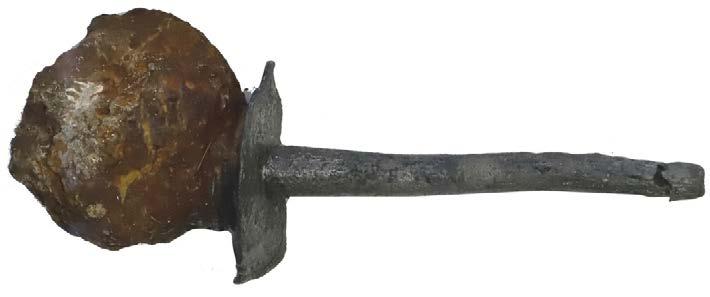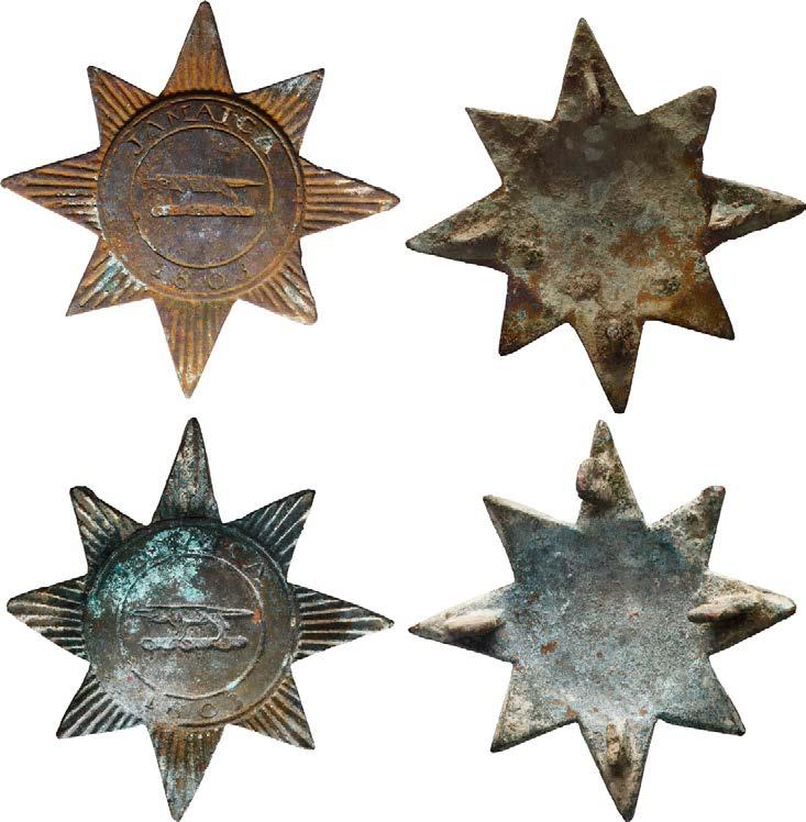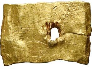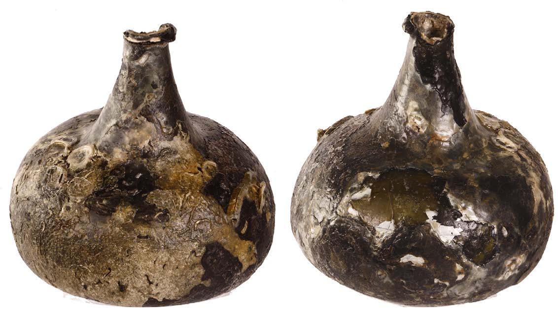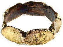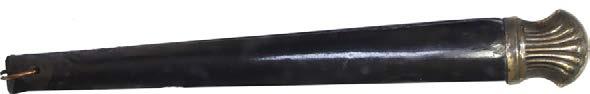 1942. Brass powder-flask spout and base (two pieces), exGuadalupe-Tolosa (1724). 117 grams total. Flask is 2½” long and base is 2¼” in diameter. The leather bag long gone, what remains are a simple, deeply patinated spout and base, no ornamentation but clearly recognizable as the important parts of a powder and shot flask. From the GuadalupeTolosa (1724), with original certificate from Captain Tracy Bowden through his contract with the Dominican Republic and copy of the article “Graveyard of the Quicksilver Galleons” by Mendel Peterson from the December 1979 issue of National Geographic Estimate: $125-$200.