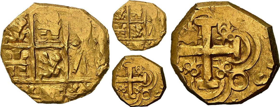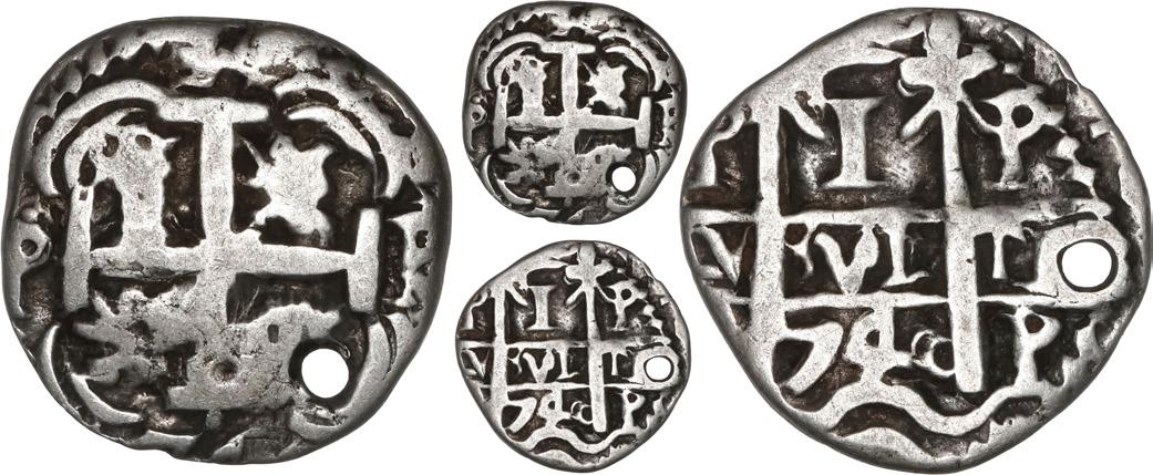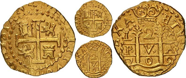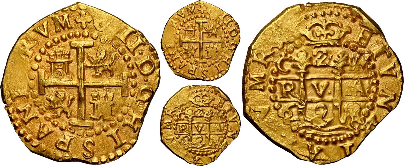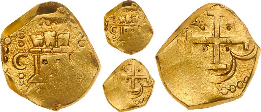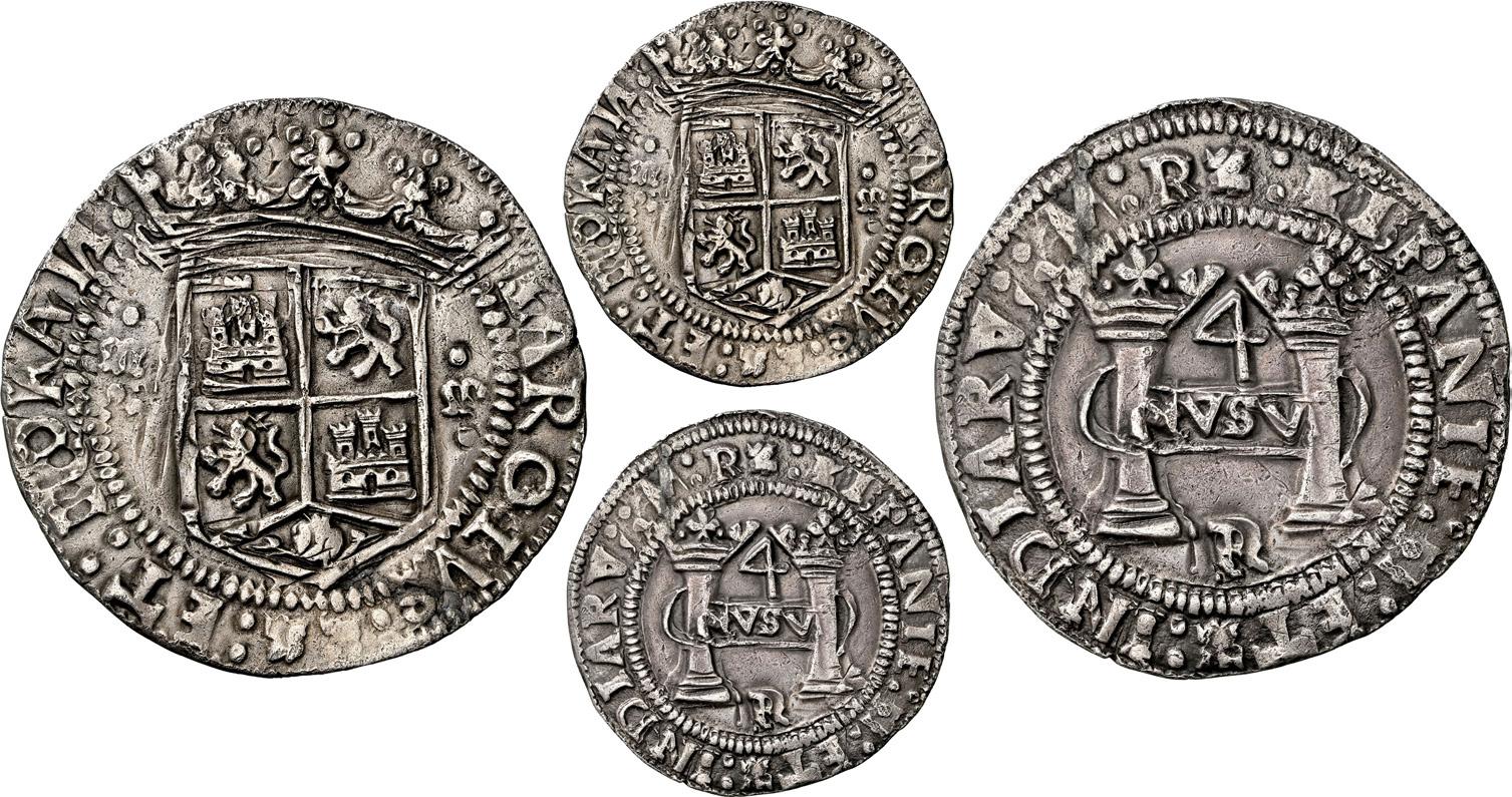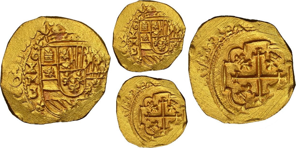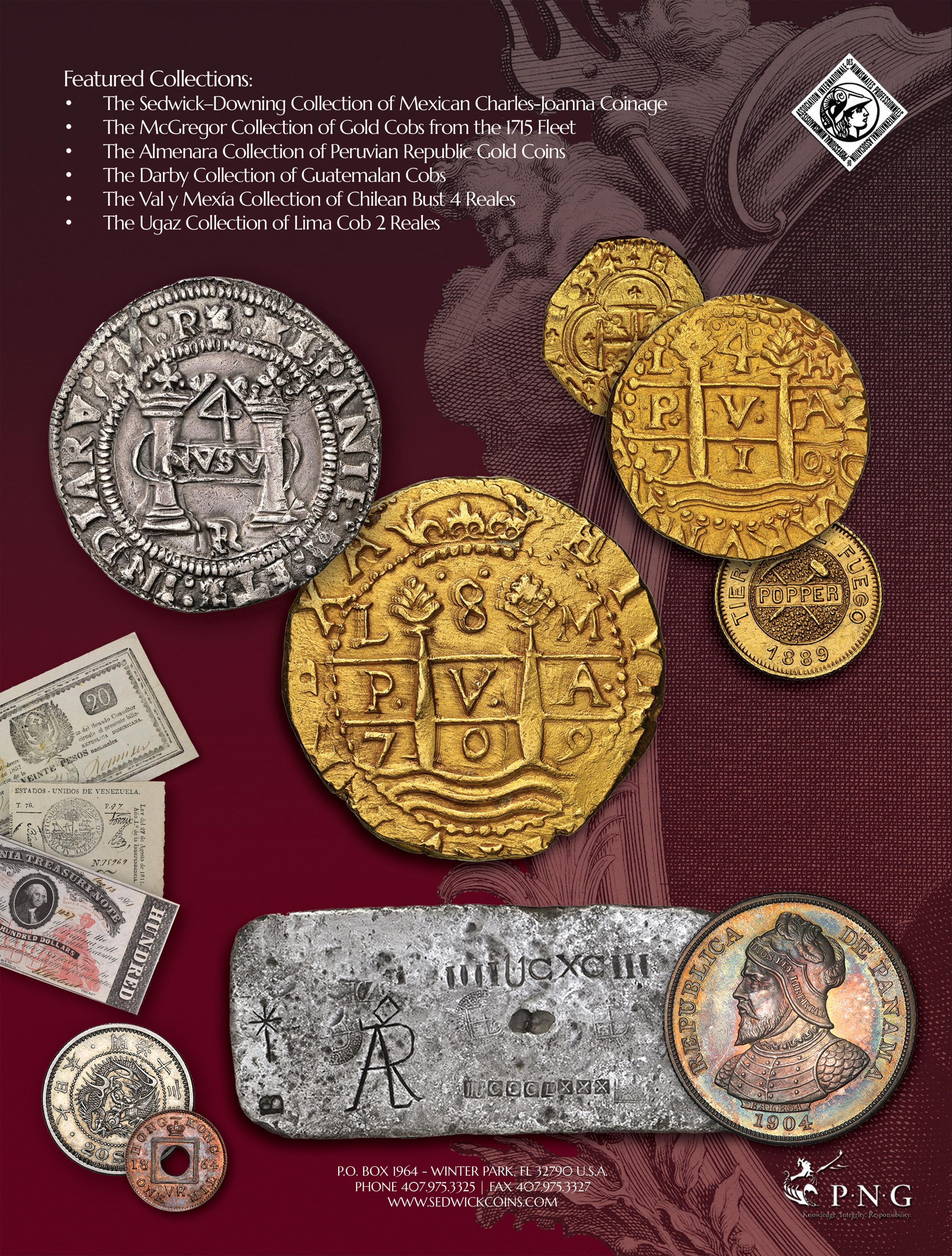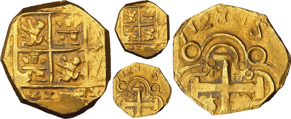 Highlighting our usual silver-cob offerings are several key collections, in addition to the aforementioned Sedwick–Downing Collection. In Lima cobs you will find the Jorge Ugaz Collection of Lima Cob 2 Reales, and in Guatemala cobs is the Darby Collection of Guatemala Cobs, both the result of decades of study and selectivity by devoted specialists. As always, “Royals” (galanos) steal the attention in all three cob sections (Mexico, Lima, Potosí), including a unique Mexican 4 reales Royal dated 1612/1, expanding the cob market into a rarified level of special pieces for truly dedicated collectors.