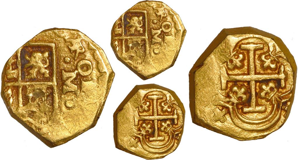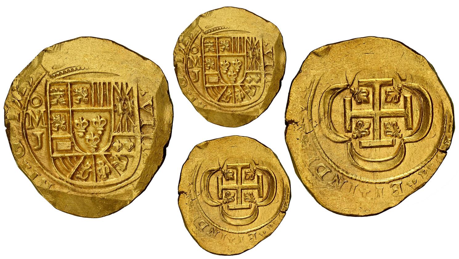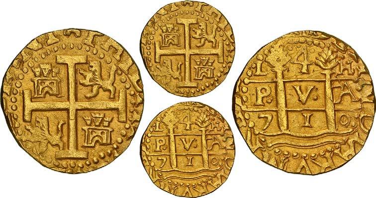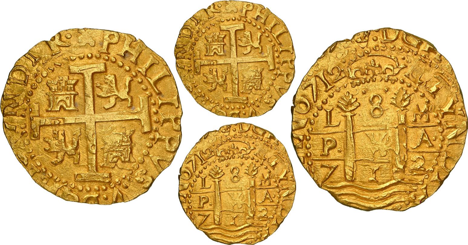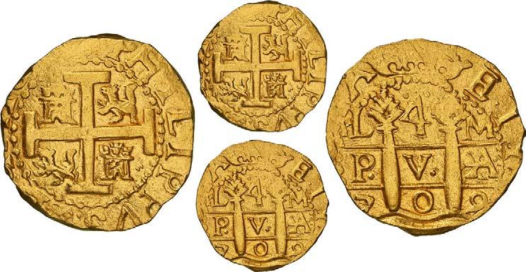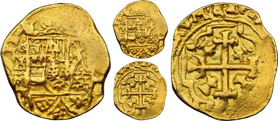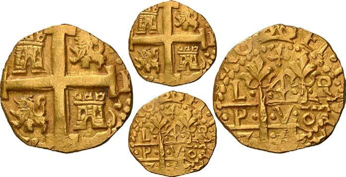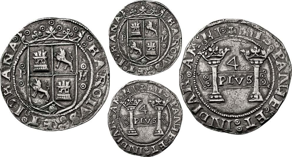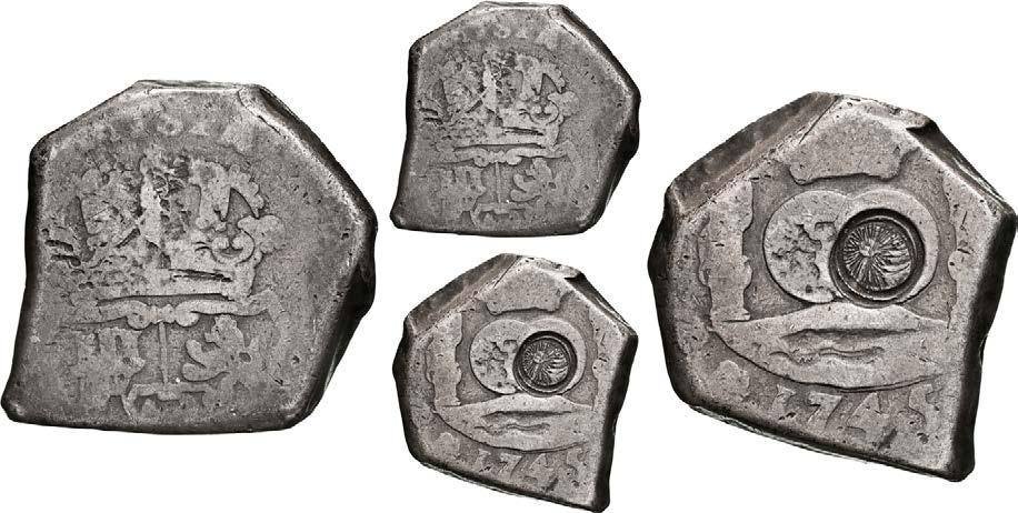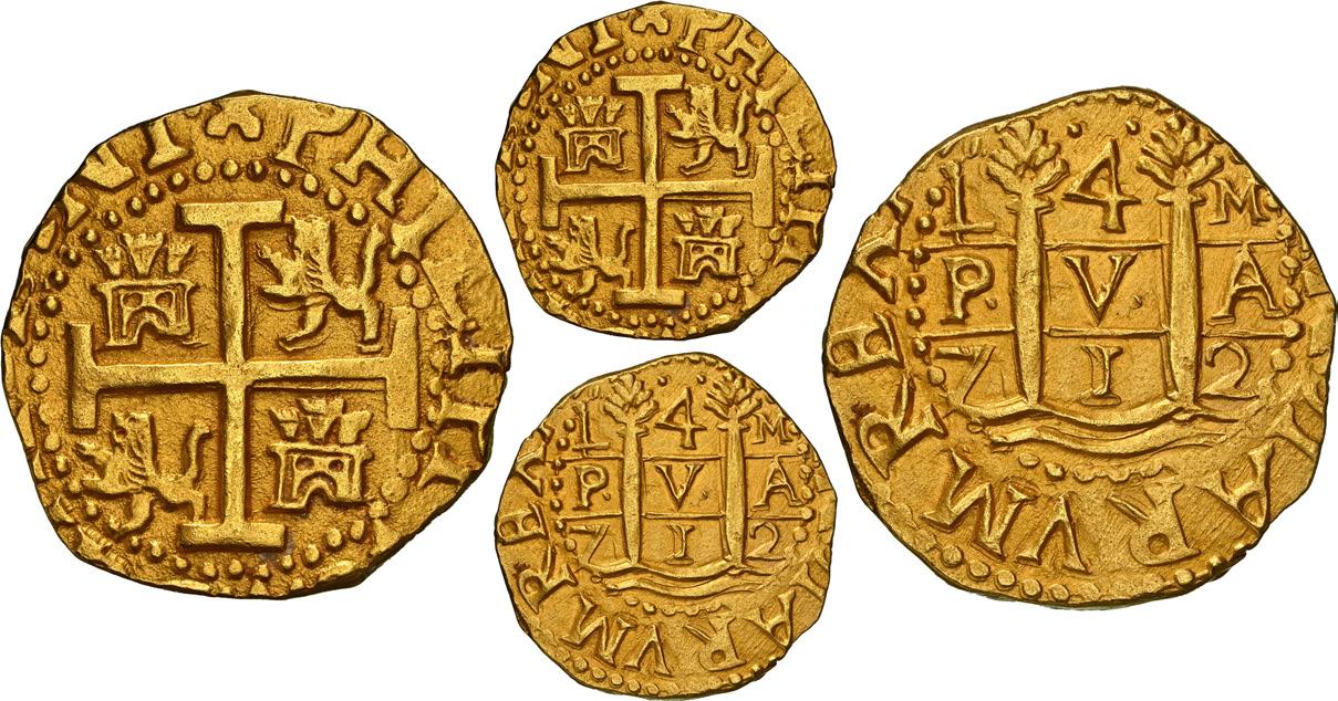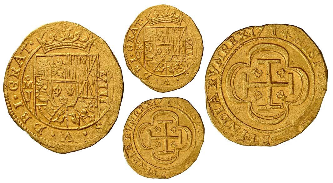 Highlighting our usual silver-cob offerings are several key collections, in addition to the aforementioned Sedwick–Downing Collection. In Lima cobs you will find the Jorge Ugaz Collection of Lima Cob 2 Reales, and in Guatemala cobs is the Darby Collection of Guatemala Cobs, both the result of decades of study and selectivity by devoted specialists. As always, “Royals” (galanos) steal the attention in all three cob sections (Mexico, Lima, Potosí), including a unique Mexican 4 reales Royal dated 1612/1, expanding the cob market into a rarified level of special pieces for truly dedicated collectors.