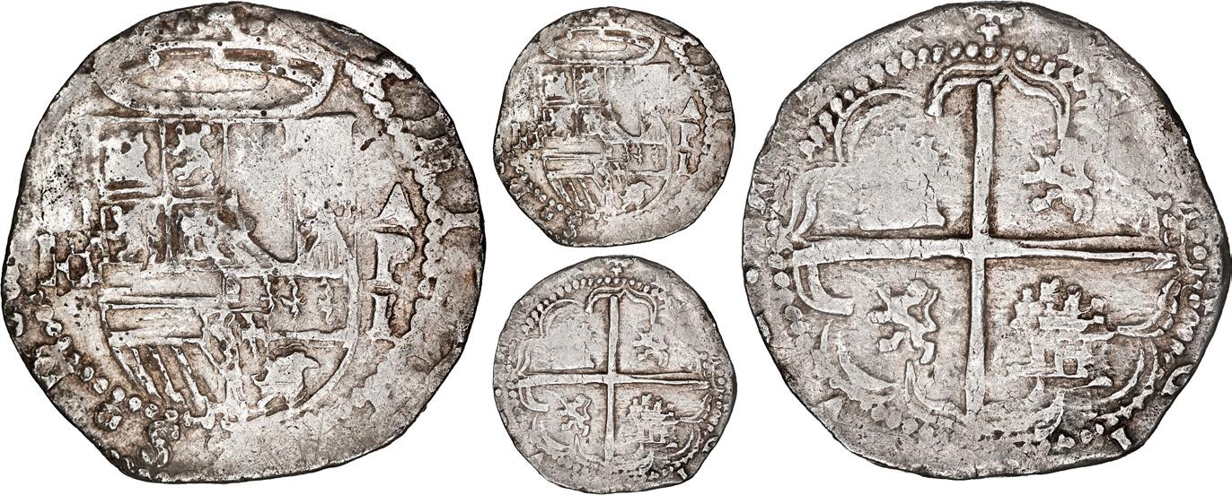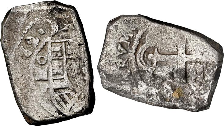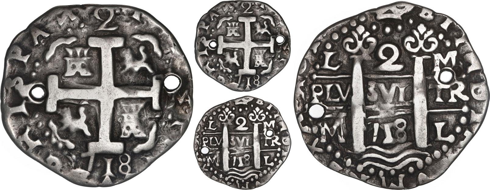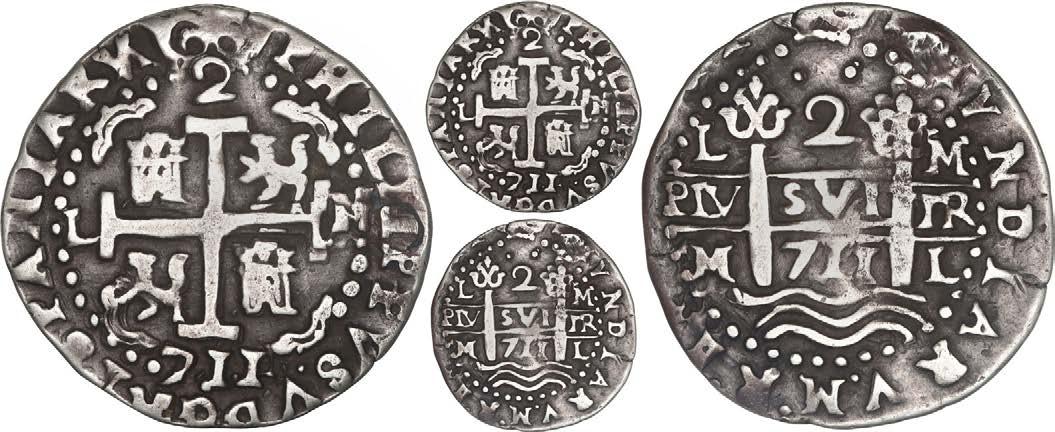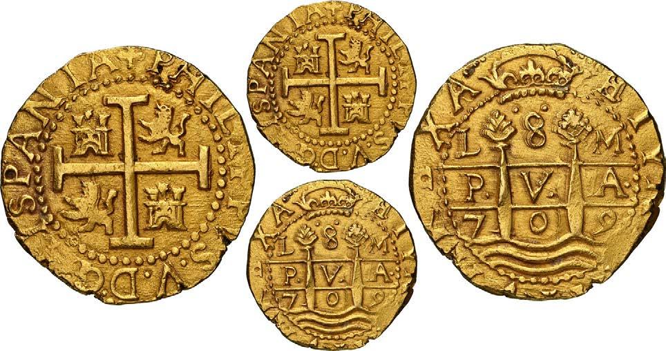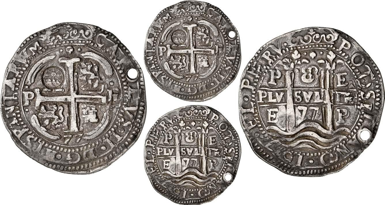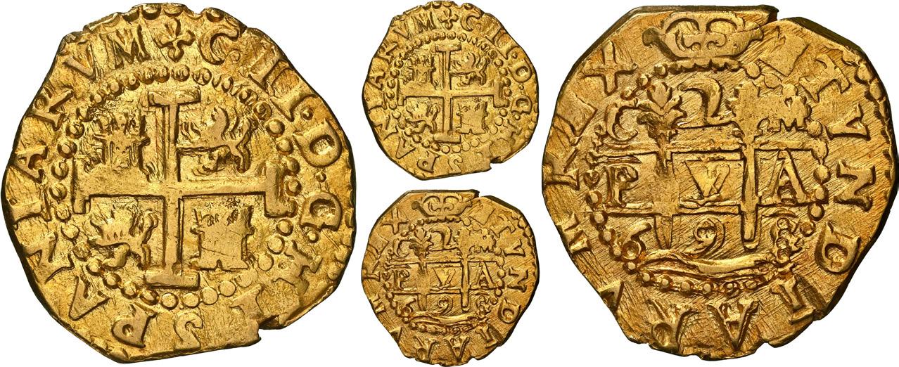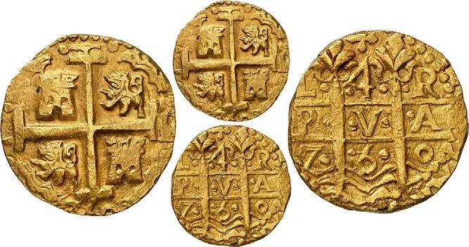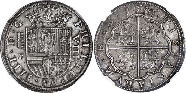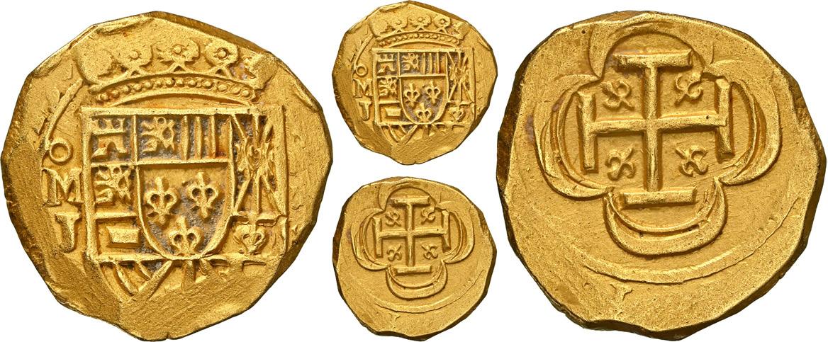 Highlighting our usual silver-cob offerings are several key collections, in addition to the aforementioned Sedwick–Downing Collection. In Lima cobs you will find the Jorge Ugaz Collection of Lima Cob 2 Reales, and in Guatemala cobs is the Darby Collection of Guatemala Cobs, both the result of decades of study and selectivity by devoted specialists. As always, “Royals” (galanos) steal the attention in all three cob sections (Mexico, Lima, Potosí), including a unique Mexican 4 reales Royal dated 1612/1, expanding the cob market into a rarified level of special pieces for truly dedicated collectors.
