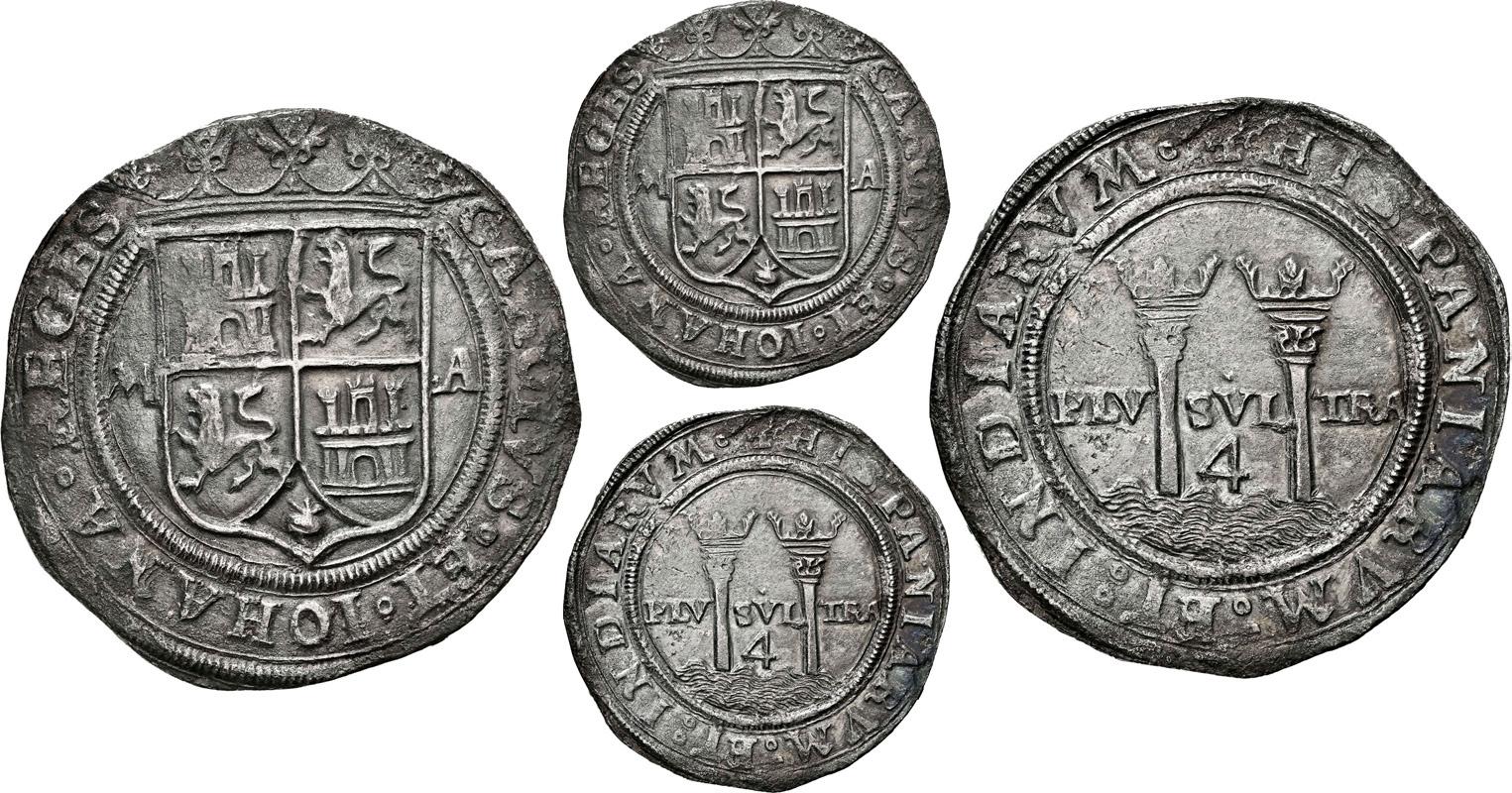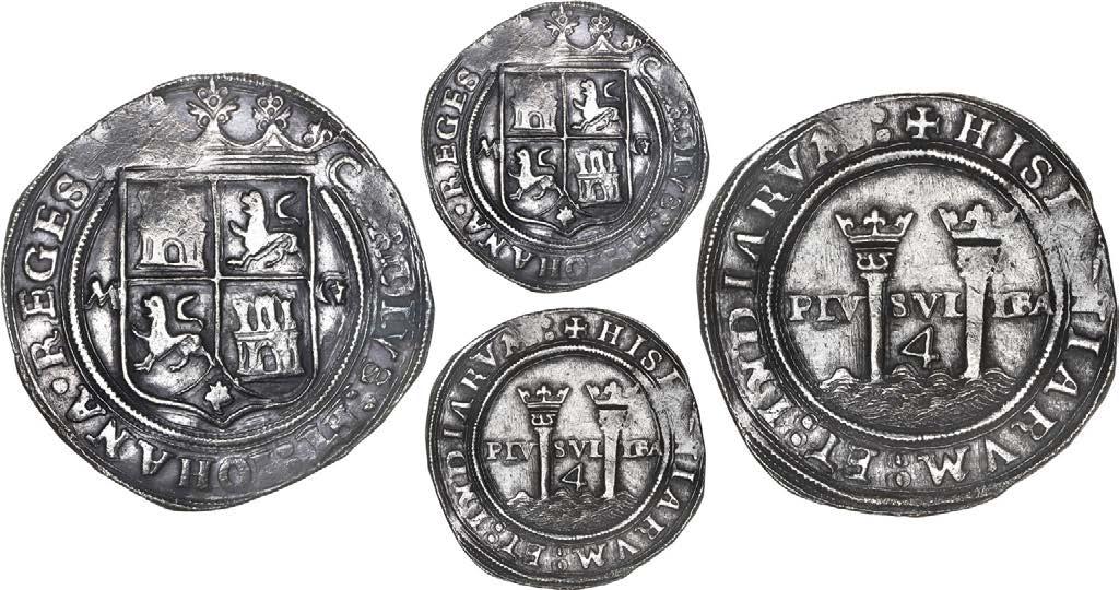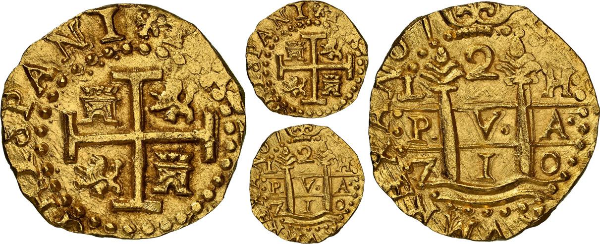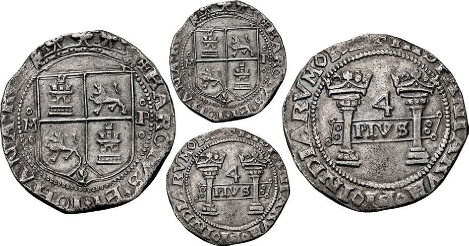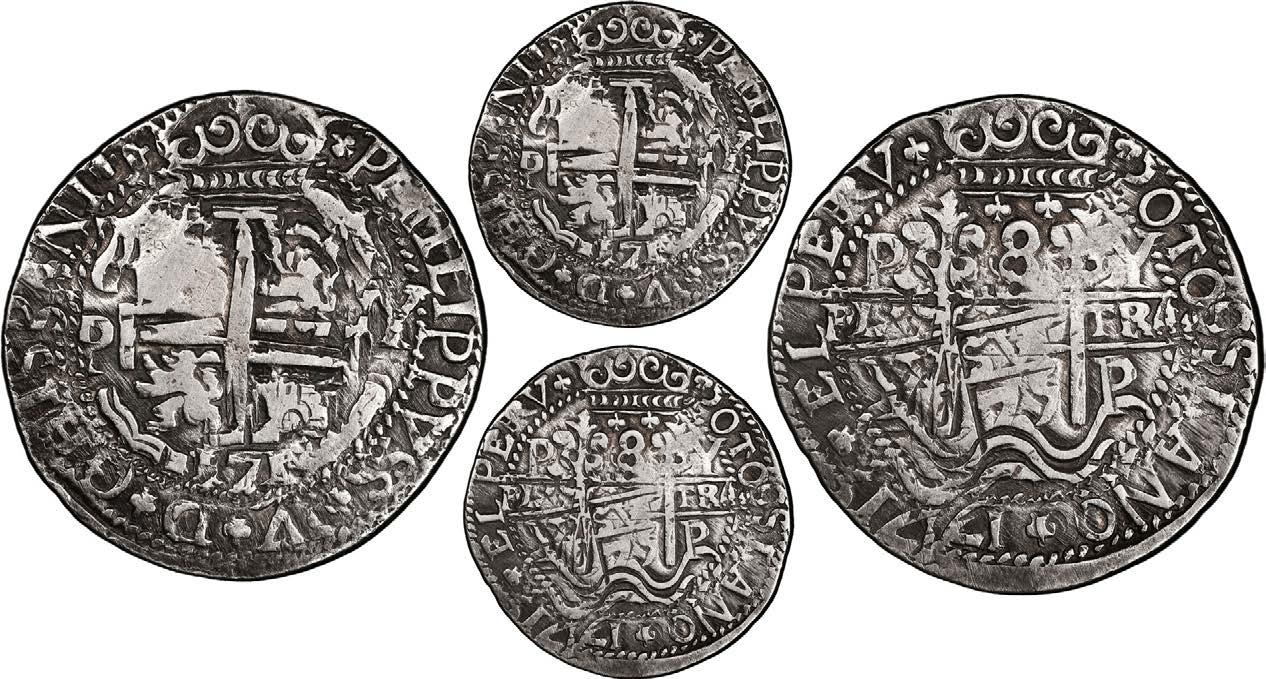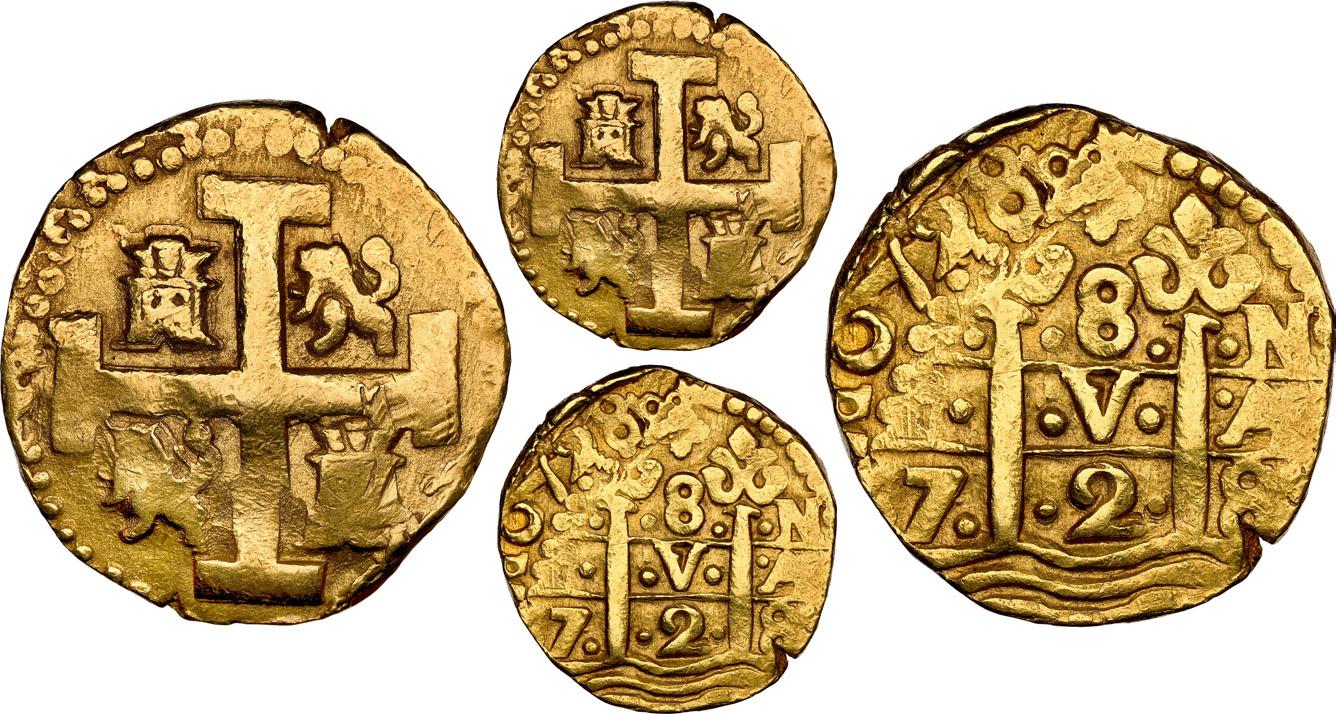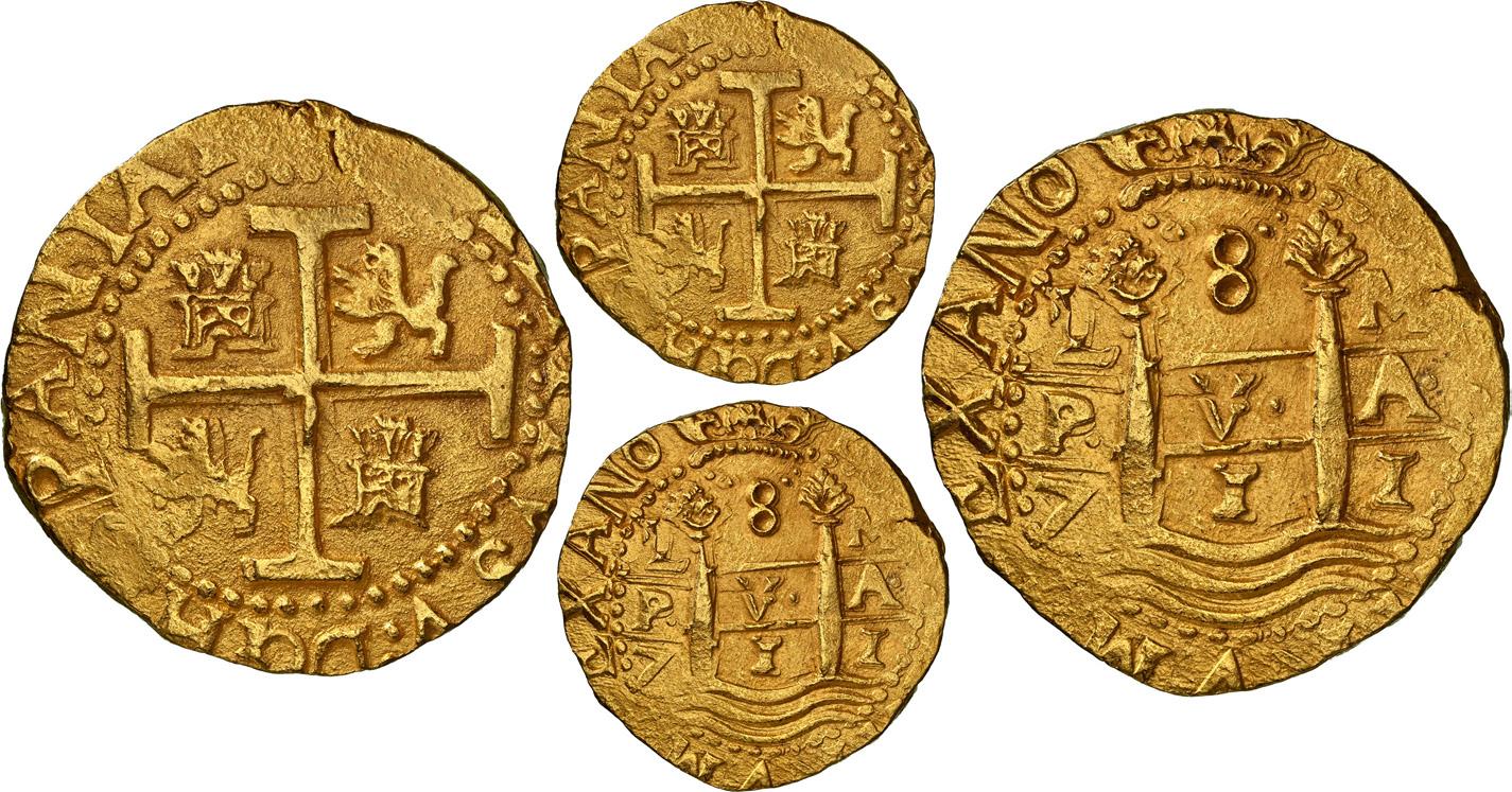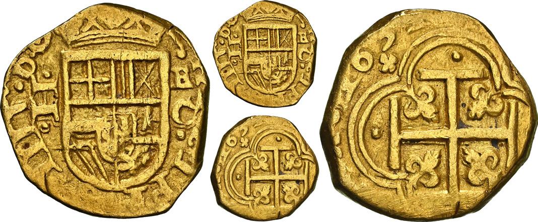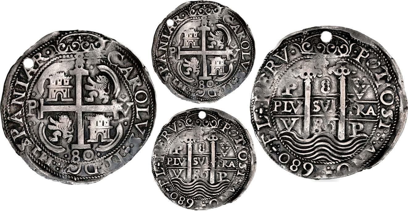 Highlighting our usual silver-cob offerings are several key collections, in addition to the aforementioned Sedwick–Downing Collection. In Lima cobs you will find the Jorge Ugaz Collection of Lima Cob 2 Reales, and in Guatemala cobs is the Darby Collection of Guatemala Cobs, both the result of decades of study and selectivity by devoted specialists. As always, “Royals” (galanos) steal the attention in all three cob sections (Mexico, Lima, Potosí), including a unique Mexican 4 reales Royal dated 1612/1, expanding the cob market into a rarified level of special pieces for truly dedicated collectors.