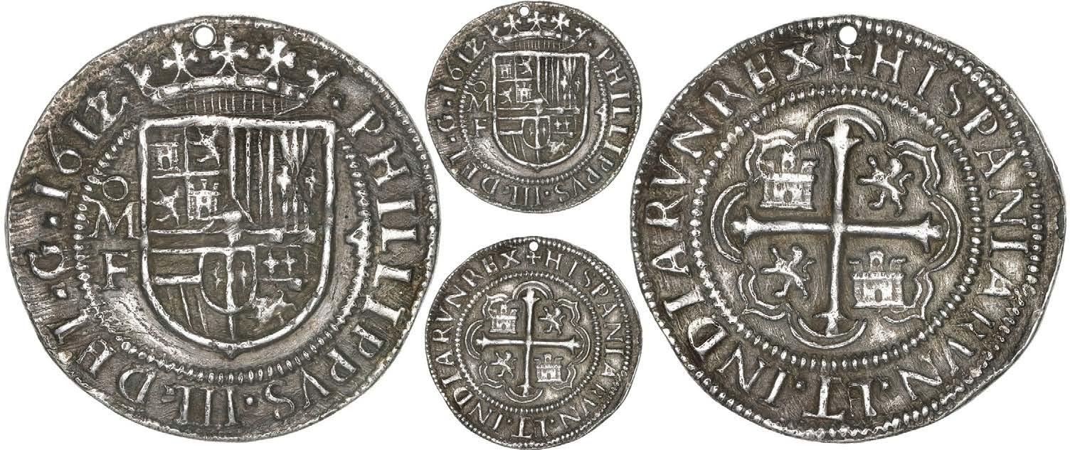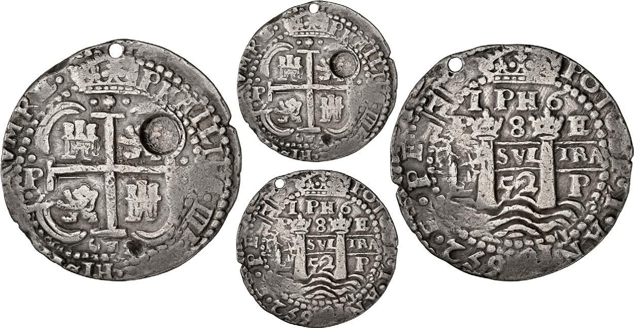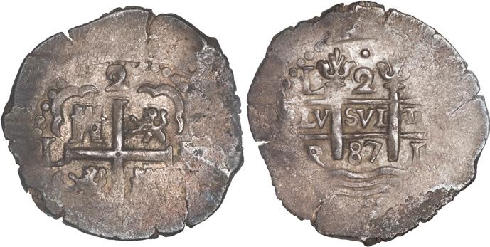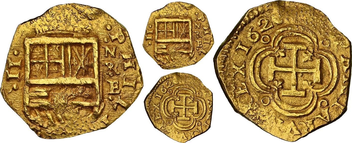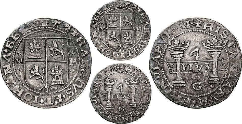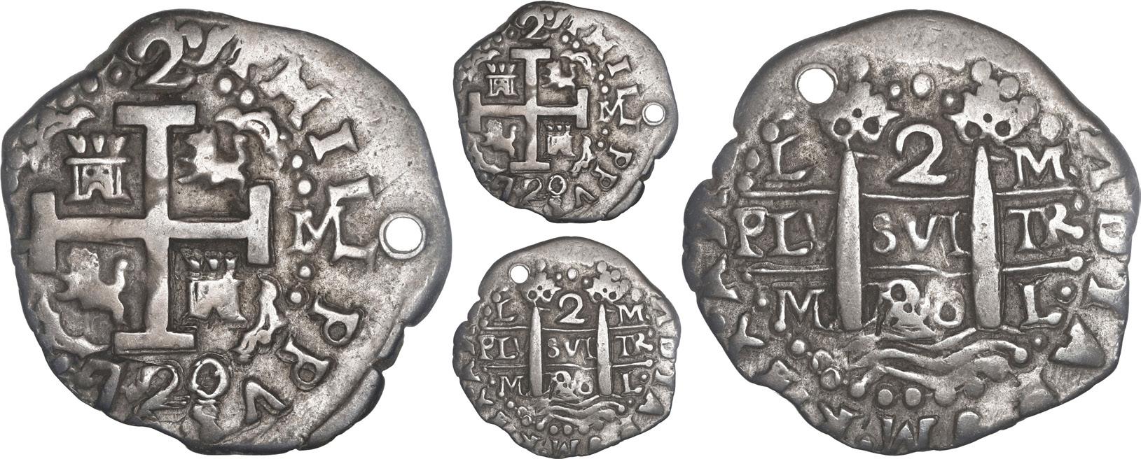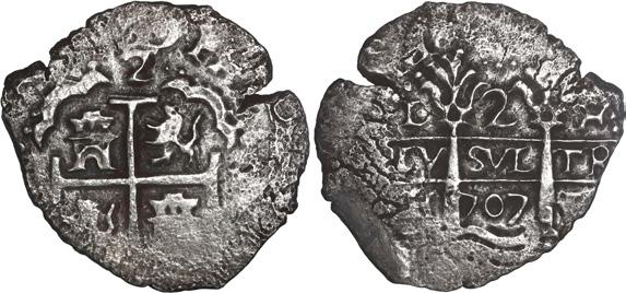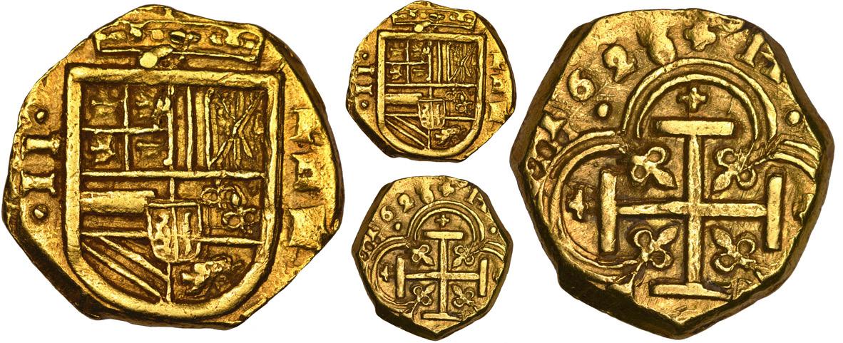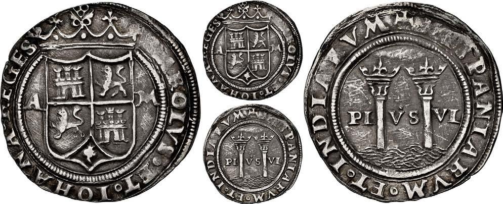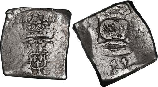 Highlighting our usual silver-cob offerings are several key collections, in addition to the aforementioned Sedwick–Downing Collection. In Lima cobs you will find the Jorge Ugaz Collection of Lima Cob 2 Reales, and in Guatemala cobs is the Darby Collection of Guatemala Cobs, both the result of decades of study and selectivity by devoted specialists. As always, “Royals” (galanos) steal the attention in all three cob sections (Mexico, Lima, Potosí), including a unique Mexican 4 reales Royal dated 1612/1, expanding the cob market into a rarified level of special pieces for truly dedicated collectors.