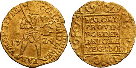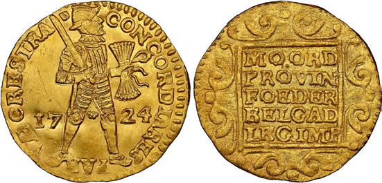 1906. NETHERLANDS (United), Holland, gold ducat, 1776, PCGS XF45. Delm-775; KM-12.3; Fr-250. Popular date as the year of the United States’ independence. Fully detailed piece with nice luster, struck on a wavy planchet (as made). PCGS #28893527. Estimate: $250-$375.
