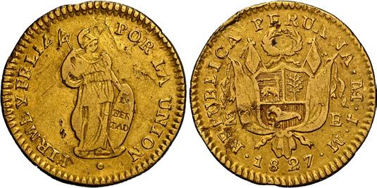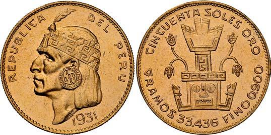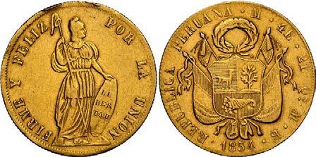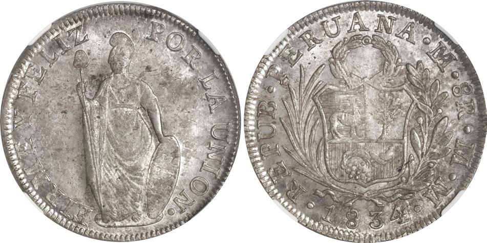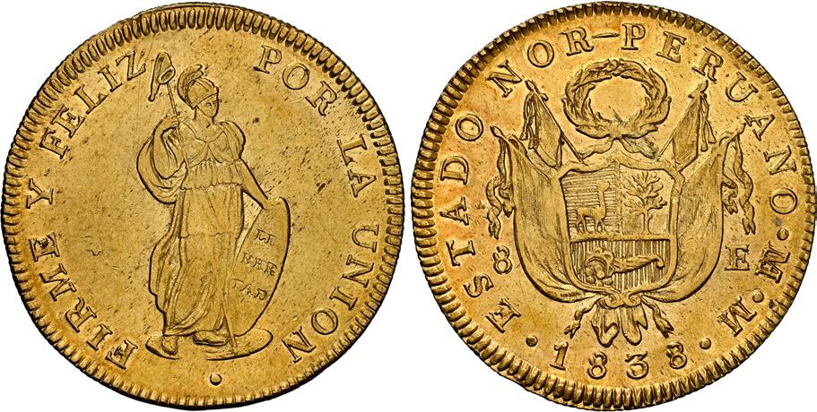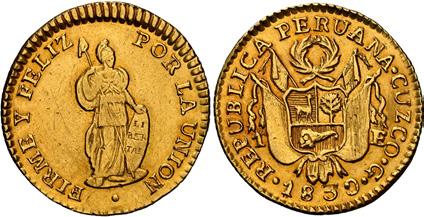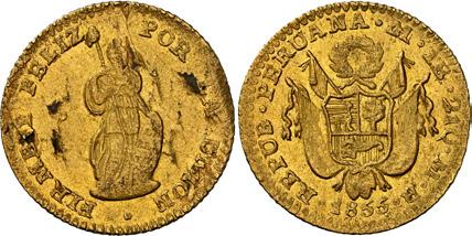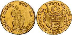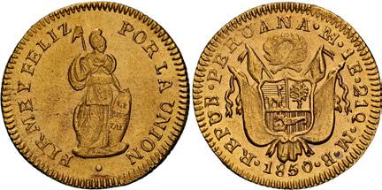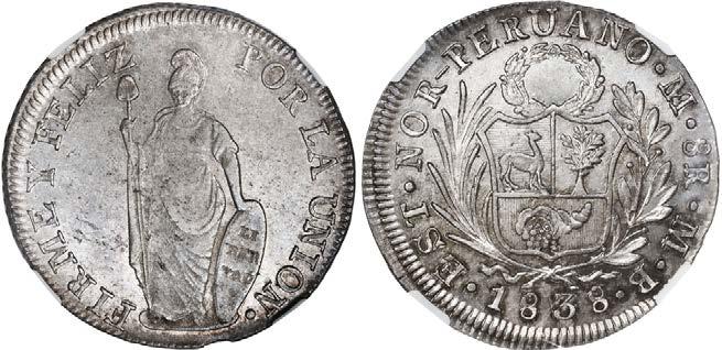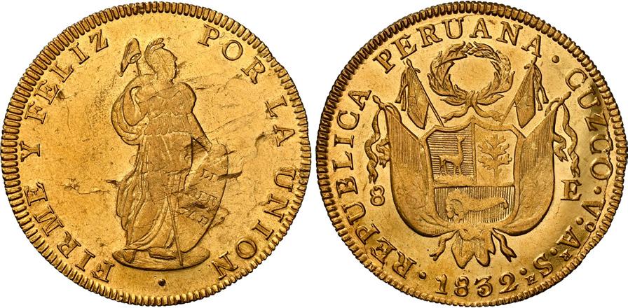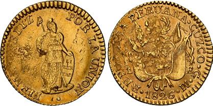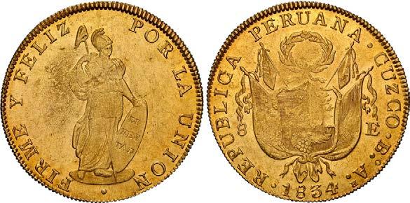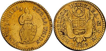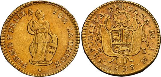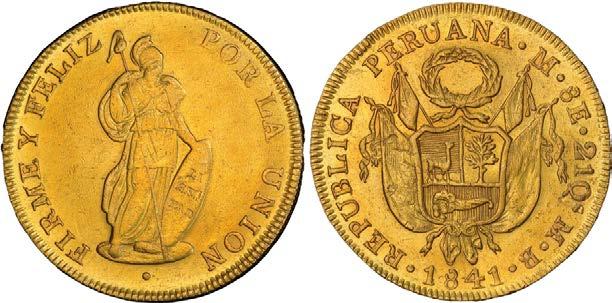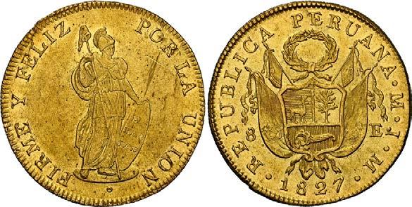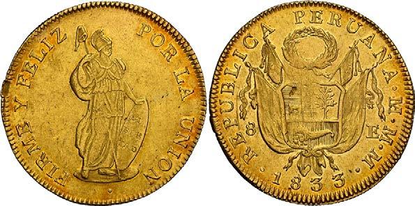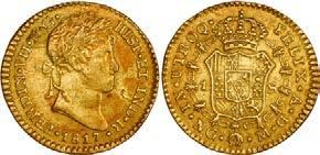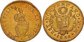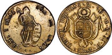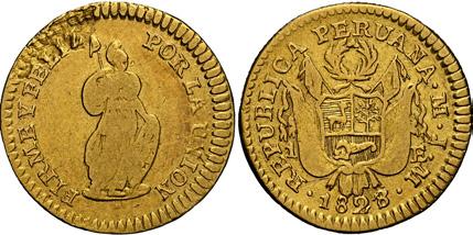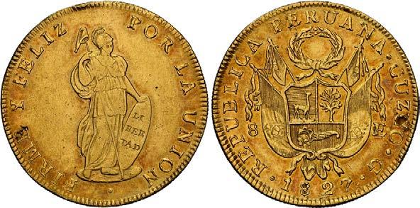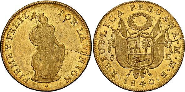1914. PERU, Lima, ¼ real, Ferdinand VII, 1818. Cal-269; KM108. 0.77 gram. Lustrous AU+ with light red-gold toning, a few surface hairlines. Estimate: $100-$150.