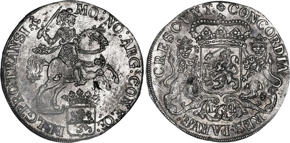 1905. NETHERLANDS (United), Gelderland, “lion” daalder, 1644. Delm-825; KM-15.2; Dav-4849. 27.08 grams. Nicely detailed XF with full design and legends, somewhat lustrous, a few small contact marks. With photo-certificate. Estimate: $175-$250.