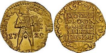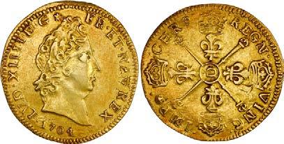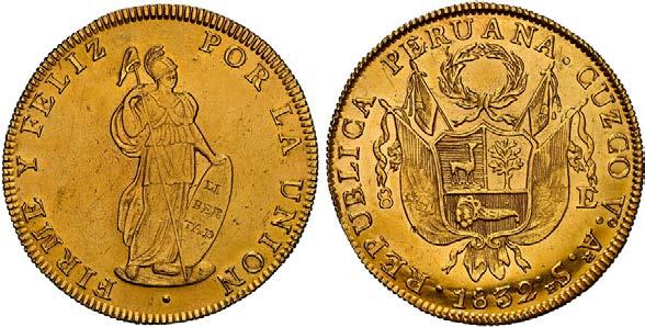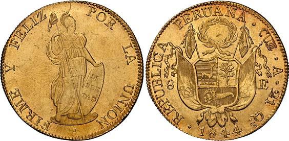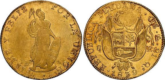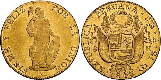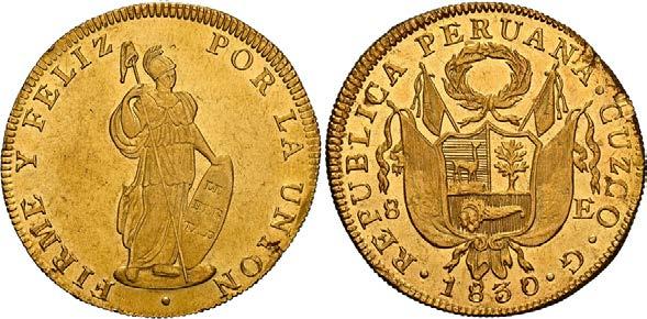 13. E C , exico City, gold cob 8 escudos “ uasi-Royal,” 1714 , “ RAT” ariety with date on re erse, ery rare, C S 61 (1715 Fleet Shipwreck Label), ex- c regor, Flemming Plate. S-M30; Cal-2212; KM-57.3; Fr-6. 26.85 grams. Nearly round and with perfectly detailed, 100% full shield and cross, also with choice full crown and nearly full legends including a bold full date above the cross, all lustrous and rich in color, a piece that Flemming described as a “large planchet ‘test’ issue” (and Schulman described as “almost Royals” in 1972) with “only two examples known,” a very handsome piece no matter how you describe it, with appeal well beyond the realm of regular issues. NGC #3641370-001. From the 1715 Fleet, with Philip Flemming photo-certificate from 2014 and plated on page 8 of his article “ arieties of the 1714 Mexico City 8 Escudos” in the June 2014 issue of the ournal of the .S. Mexican Numismatic Association (copy included), pedigreed to the McGregor Collection (stated on label). Estimate: $20,000-up.