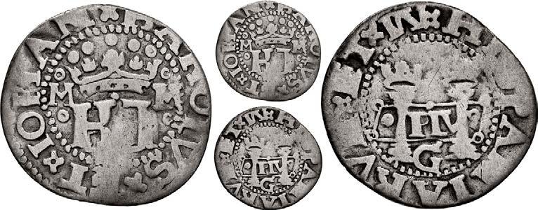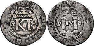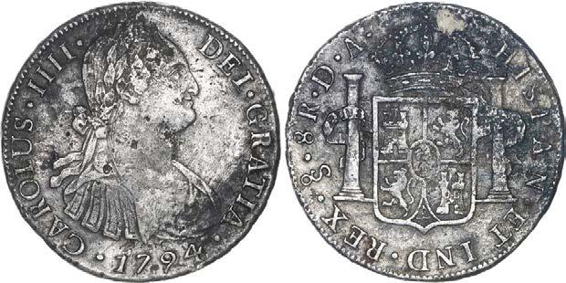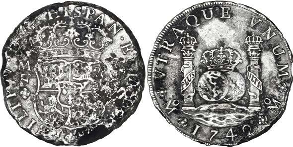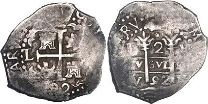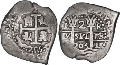 From best to worst, UNC is Uncirculated, AU is Almost Uncirculated, XF is Extra Fine, VF is Very Fine, F is Fine, VG is Very Good, and G is Good, with Fair and Poor below that. (“About” or “A” means the coin is just shy of the indicated grade. Mint State refers to lustrous, choice UNC coins.) We do not always assign numismatic grades to sea-salvage and land-burial coins, which were usually Uncirculated (or close to it) before the e ects of corrosion and/or cleaning. Corrosion is usually assessed, from least to most, as follows: none, minimal, light, moderate, and heavy. Also note that we sometimes use the abbreviations E for escudos and R for reales in the listings for Spanish and Spanish colonial items.