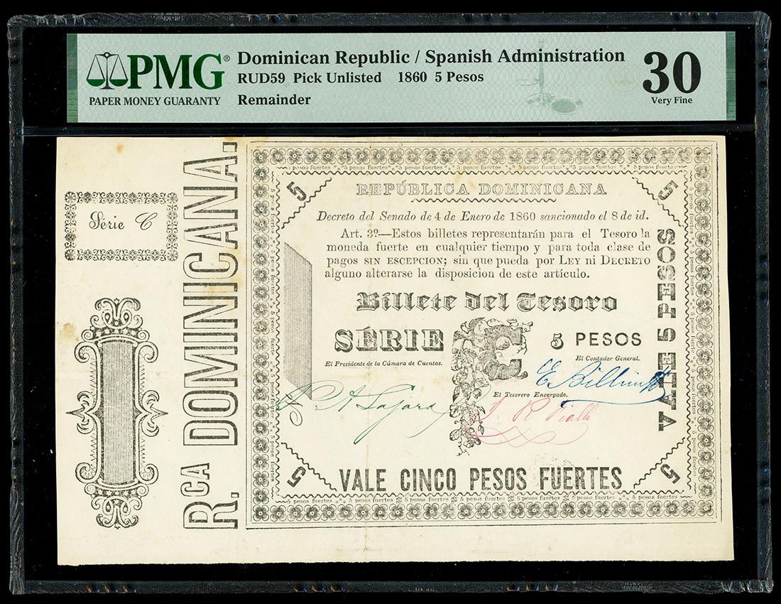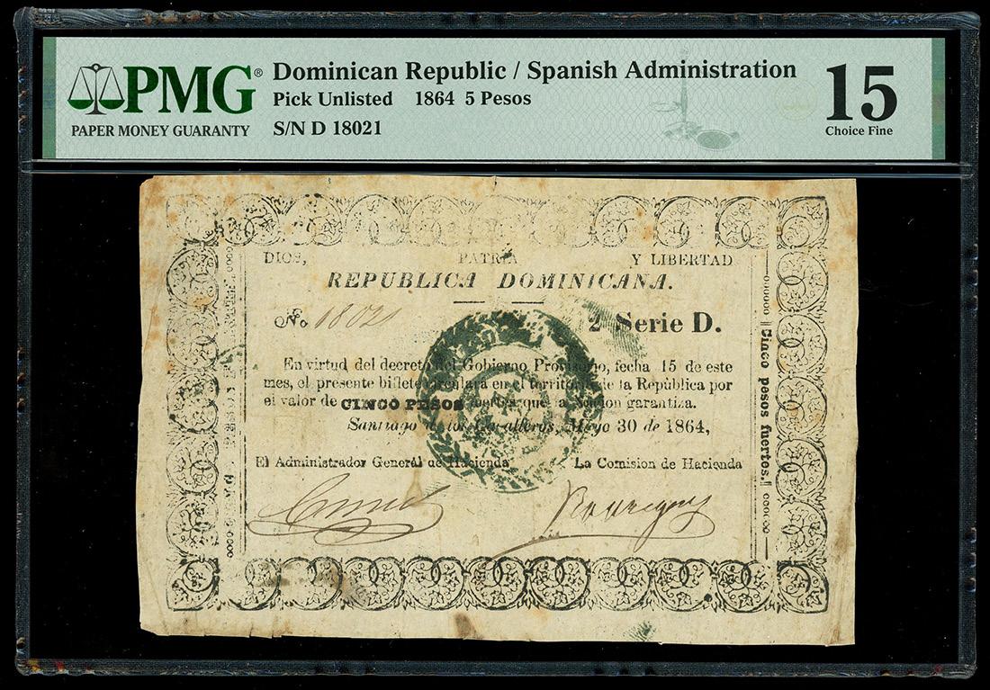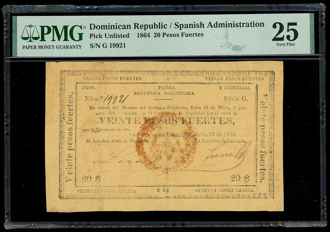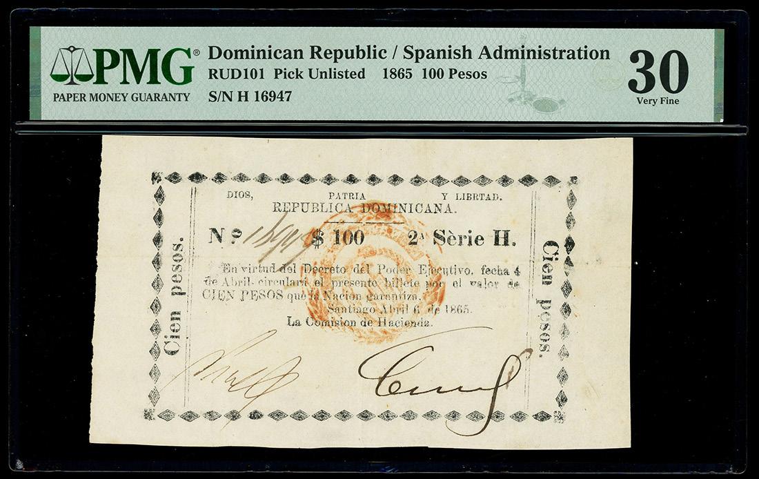 The other side of numismatics is paper money, and in Latin America we continue a strong auction presence, here with a selection of incredibly rare and high-grade Dominican Republic notes issued between 1857 and 1865, all new to the market.