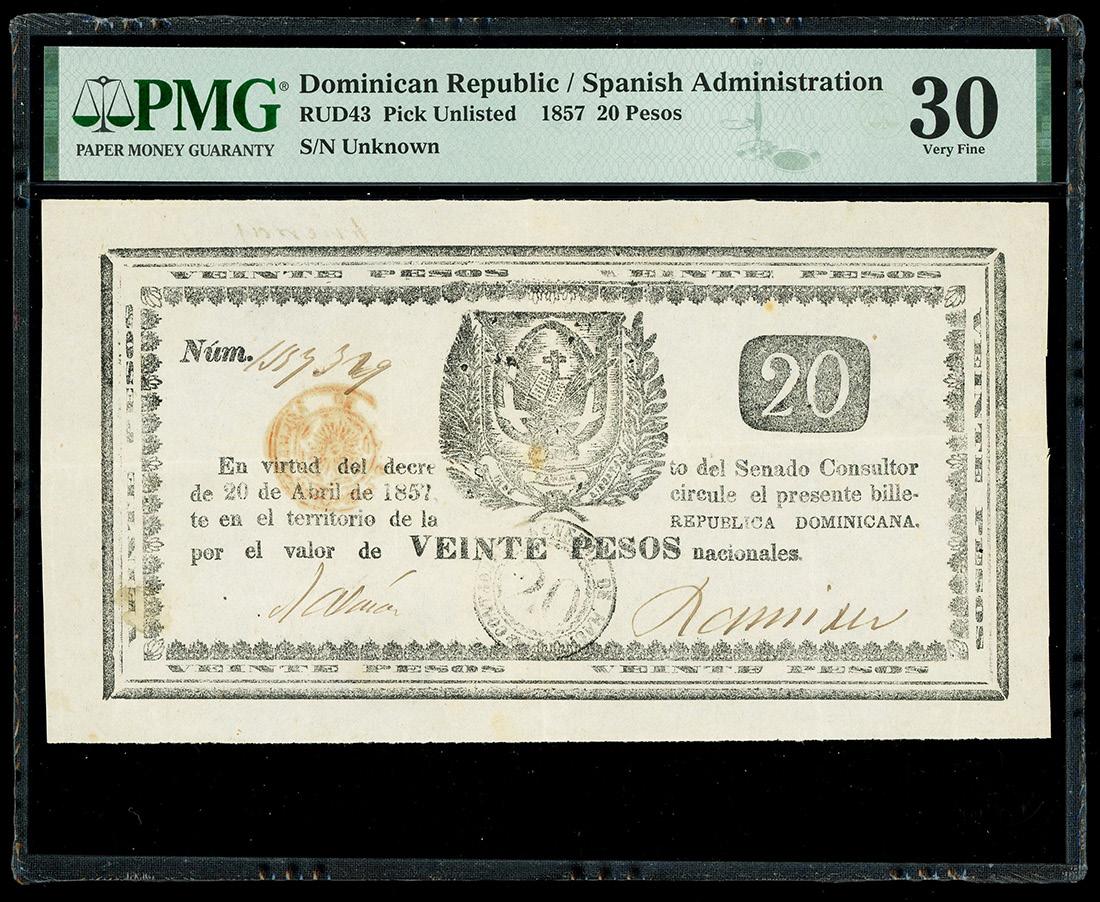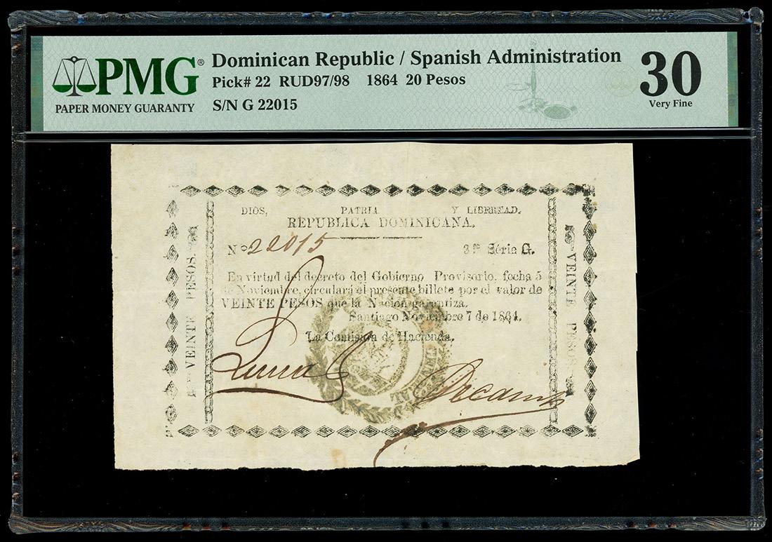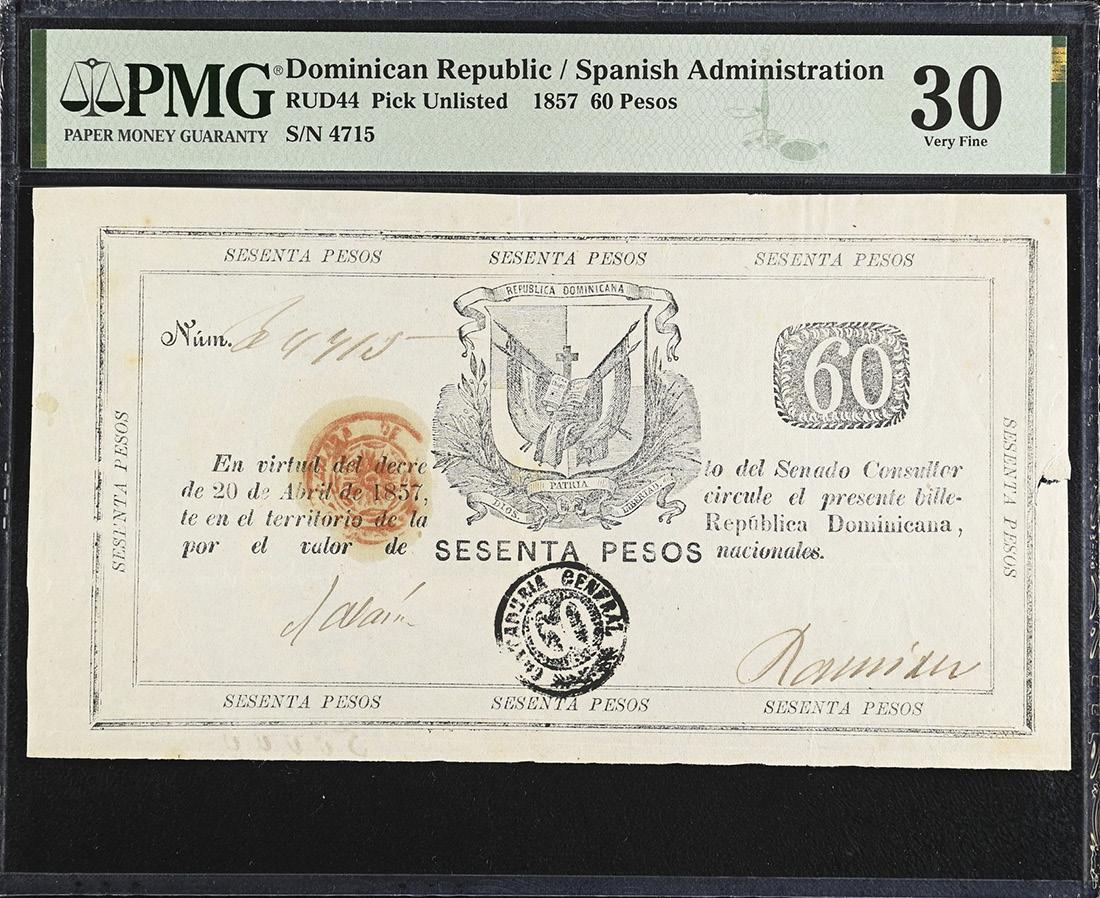 The other side of numismatics is paper money, and in Latin America we continue a strong auction presence, here with a selection of incredibly rare and high-grade Dominican Republic notes issued between 1857 and 1865, all new to the market.