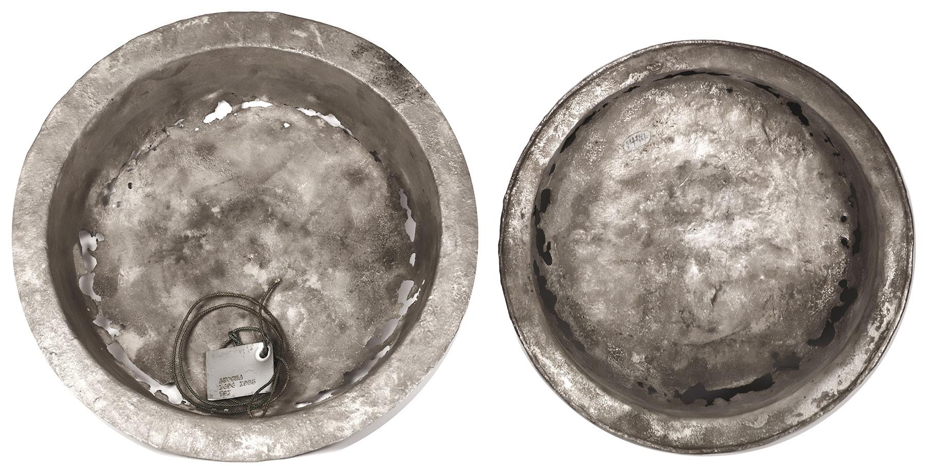 1941. Brass hand guard for a cage-hilt sword, ex-GuadalupeTolosa (1724). 81 grams. 5” x 4” x 4”. Worn by time and the sea, the lines still recognizable as a hand guard for a hilt sword, minus the blade and flat front piece, darkly patinated all over. From the Guadalupe-Tolosa (1724), with original certificate from Captain Tracy Bowden through his contract with the Dominican Republic and copy of the article “Graveyard of the Quicksilver Galleons” by Mendel Peterson from the December 1979 issue of National Geographic. Estimate: $100-$150.