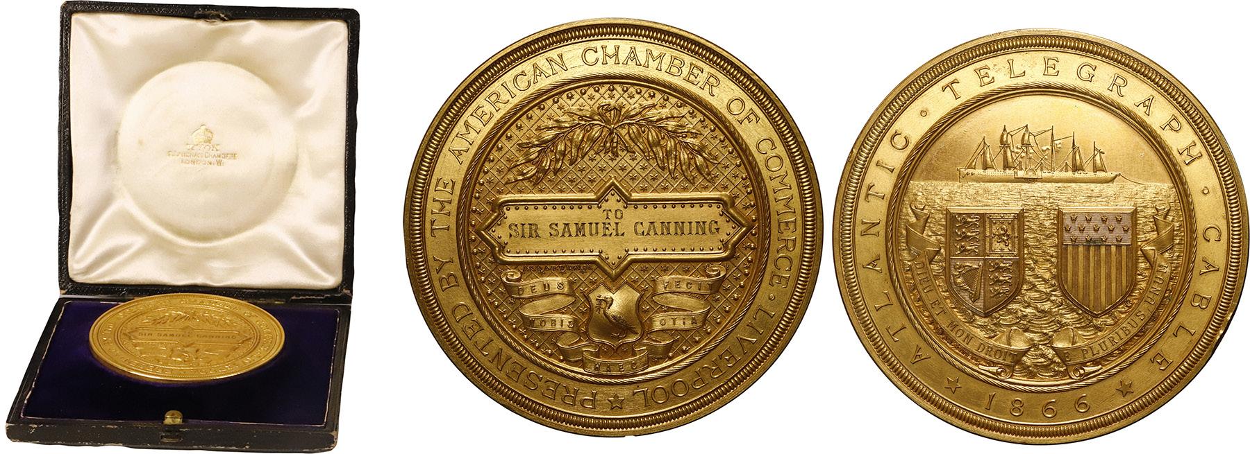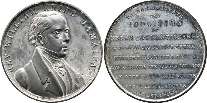 JAMAICA 1891 in center with wreath around; Edge: Plain. Lustrous, golden AU+ medal with a high-relief design lending to just a bit of cabinet rub on the high points of the bust. Pedigreed to the Glendining’s auction of March 21, 1990, with original lot-tag 301. Estimate: $100-$150.