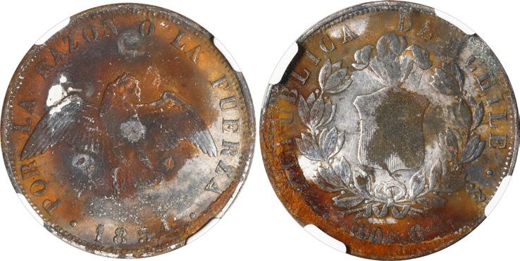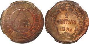 1912. PARAGUAY, struck at the Heaton Mint in Birmingham, England, copper 4 centésimos, 1870-SHAW, PCGS MS62 Brown. KM-4.1. Boldly struck example with deep chocolate brown toning all over. PCGS #50900390. Estimate: $100-$150.
