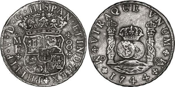 1890. MEXICO, Mexico City, pillar 4 reales, Philip V, 1746 MF. Yonaka-M4.46; Cal-1133; KM-94. 12.99 grams. Deeply toned AVF with a couple of old surface scratches. Estimate: $175-$250.