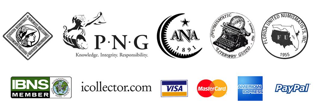 7. Acceptable forms of payment are cash, check, e-check, money order, wire transfer, direct deposit, PayPal, Zelle, Visa/MC, American Express, and Discover. All payments by check or money order should be made payable to Sedwick & Associates, LLC. Payments per auction and per buyer are limited to the following amounts: PayPal and Zelle (to auction@sedwickcoins.com), $2,500; credit card, $10,000; checks, $100,000 (must be paid via wire beyond that). All payments shall be in U.S. dollars drawn on a U.S. bank. Please contact us for instructions for wire-transfer payments, for which bank charges may be necessarily added to the amount to be paid, generally depending on the country from which the wire originates. Note: Overseas/international wires are not allowed for amounts below $1,000.