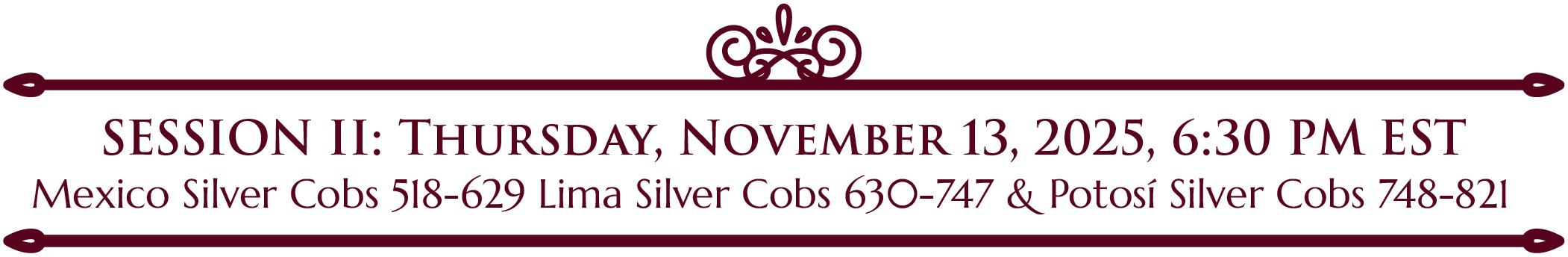 As the world’s leading purveyors of New World cobs and shipwreck coins, we have always separated and highlighted our cob and shipwreck o erings from the rest of what we sell. We have preserved that arrangement in our auctions as well, with cobs presented in order of establishment of each mint and the shipwreck coins, ingots and artifacts presented in chronological order by wreck.