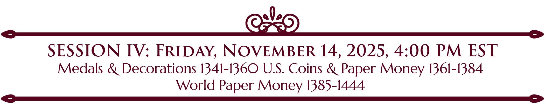 Sedwick & Associates: Treasure, World, U.S. Coin and Paper Money Auction 38, November 13-15, 2025