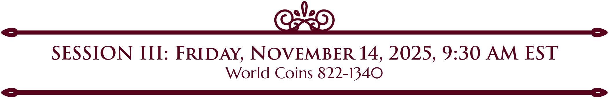 SESSION III: 9:30 AM EST World Coins (by country)..........................................................................................822-1340........169-251