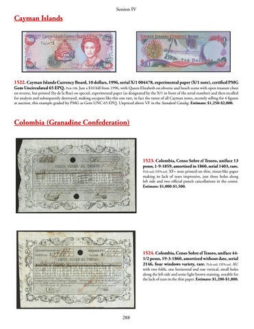 note printed on thin, tissue-like paper making its lack of tears impressive, just three holes along left side and two official punch cancellations in the center. Estimate: $1,000-$1,500.