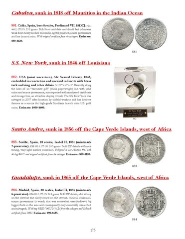 Santo Andre, sunk in 1856 off the Cape Verde Islands, west of Africa 883. Seville, Spain, 20 reales, Isabel II, 1851 (mintmark