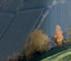 Terrasse mit Flechtenbefall. Tonziegeldach mit Schwarzalgenbefall.