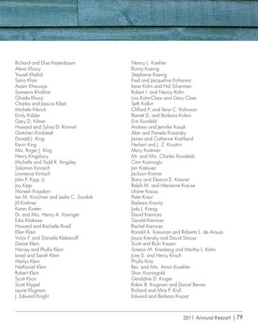 Richard and Elise Kestenbaum Alexa Kfoury Yousef Khalidi Saira Khan Aasim Khawaja Someera Khokhar Ghada Khunji Charles and Jessica Kibel Michele Kibrick Emily Kidder Gary D. Kilmer Howard and Sylvia D. Kimmel Gretchen Kindstedt Donald J. King Kevin King Mrs. Roger J. King Henry Kingsbury Michelle and Todd R. Kingsley Solomon Kinraich Lawrence Kintisch John P. Kipp, Jr. Joy Kipp Monesh Kirpalani Ian M. Kirschner and Leslie C. Soodak Jill Kirshner Karen Kirsten Dr. and Mrs. Henry A. Kissinger Eika Kitakaze Howard and Rochelle Kivell Ellen Klain Victor F. and Danielle Klebanoff Daniel Klein Harvey and Phyllis Klein Israel and Sarah Klein Marlys Klein Nathaniel Klein Robert Klein Scott Klion Scott Klippel Laurie Klugman J. Edward Knight