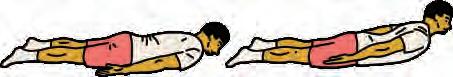 將肩胛骨往內收,腳背貼地,順勢將手往下壓 以下背往下壓將上半身抬起來。停留�秒後向下放鬆,反覆操作。