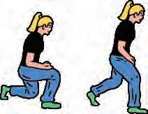 增加大腿與屁股的力量,踩出一個自己感到舒適的弓箭步,重心 放在前腳,想像頭頂拉著一條線,維持身體穩定,吸飽一口氣往下 坐,膝蓋不點地,以前腳與屁股的力量將身體撐起,交叉做。
