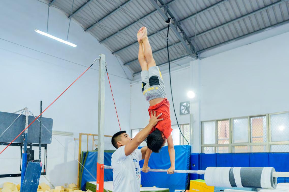 現在主要以教練身份活躍在體操場 上的游朝偉,除了回到母校台坂國小 教小選手之外,賽季期間也在國訓中