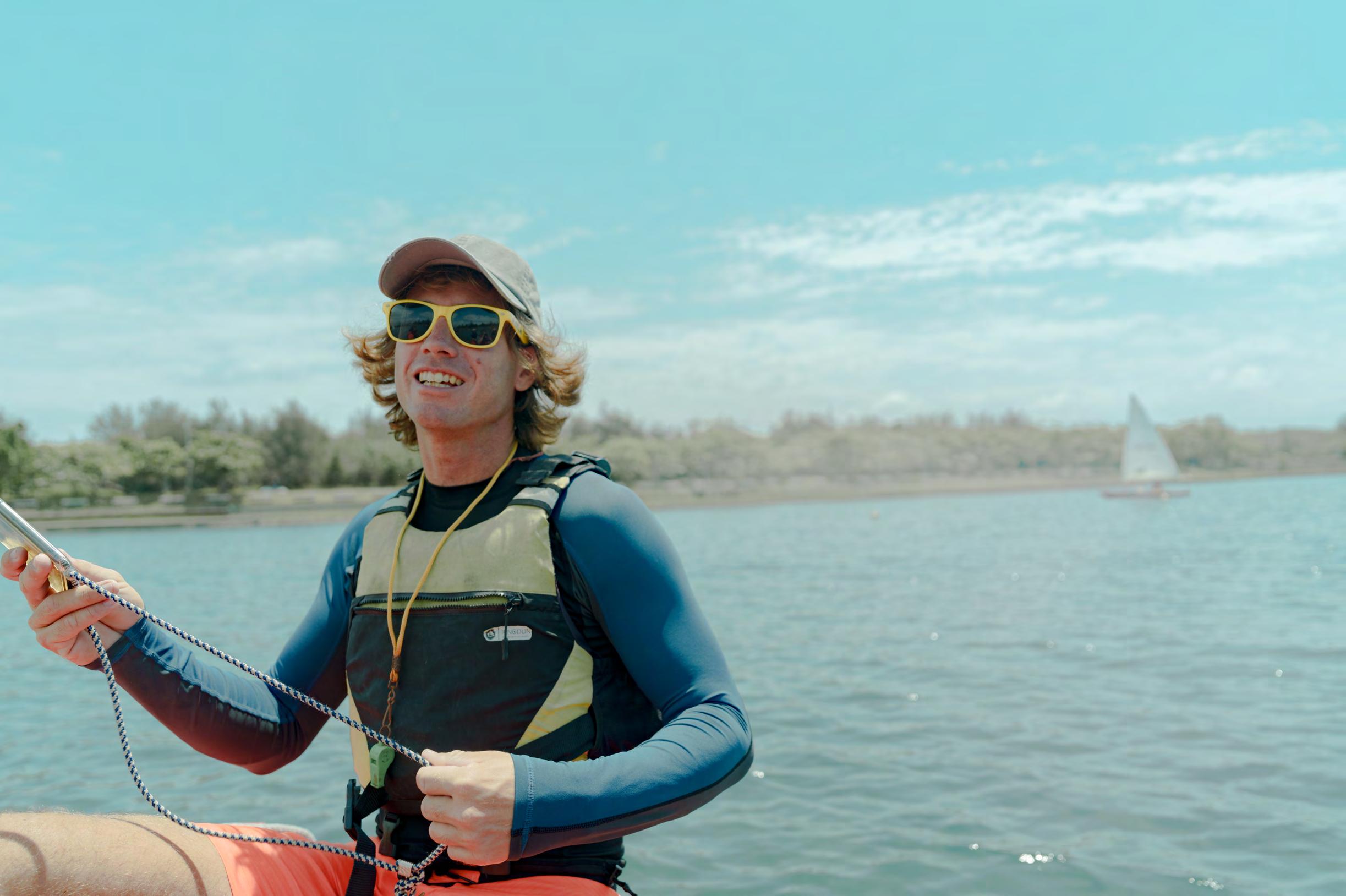 臺東擁有著得天獨厚的天然環境,媲 美加勒比海與馬爾地夫的清澈海水與 好天氣,卻鮮少看見非商用或是漁業 用船在汪洋上自在航行的身影,這是 讓小飛感到非常奇怪的現象。來到臺 東之前,小飛是周遊世界的帆船教練, 也參加過許多世界級的航行賽事,八 年前他決定定居在讓他一見鐘情的臺 灣。在臺灣過去歷史和社會脈絡下,人 們不習慣親近海洋,因此要推動海上 運動,仍有許多階段要努力,當我們詢 問小飛,為什麼明知有這麼多限制與 關卡還是堅持要在這塊土地上做這件 事呢?小飛回答,在臺灣他幾乎需要將 畢生所學都使用出來,才能夠推動事 情前進一點點,但每年都有新的挑戰 與驚喜發生,就代表著事情正在前進, 不到放棄的時候。