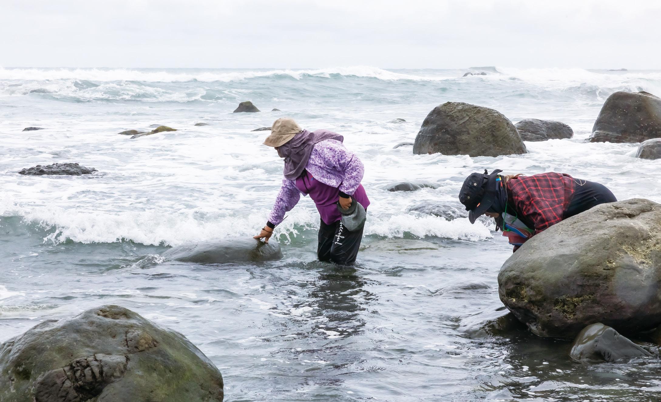 都蘭女性在浪潮間採集 , 與大海展開最親密的接觸 。