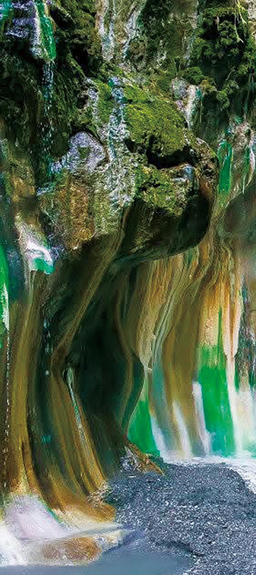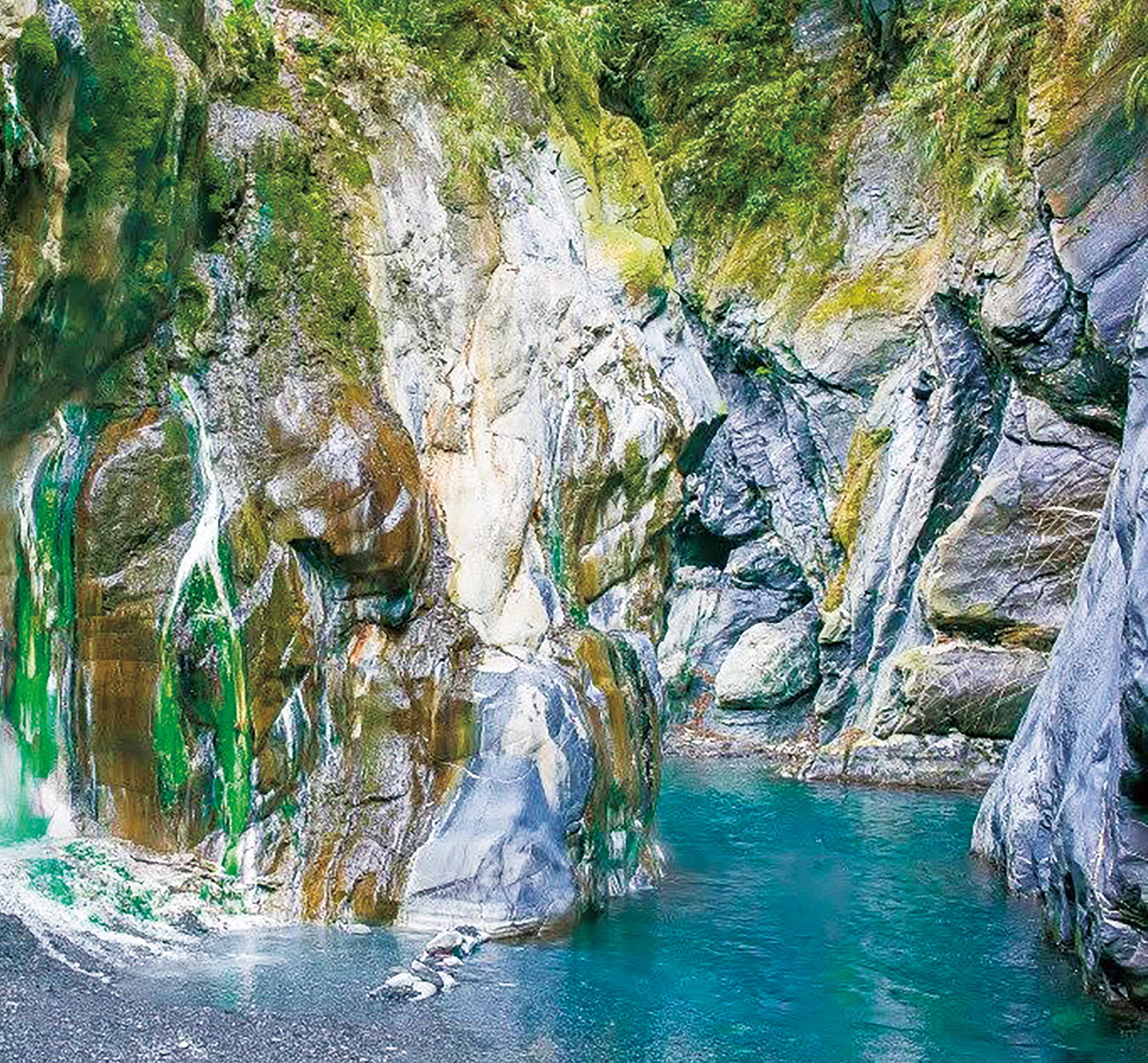 必須越嶺涉水而行 , 才能見到七彩礦脈流淌的夢幻祕 境 , 彷彿大自然親手寫下的詩篇 。