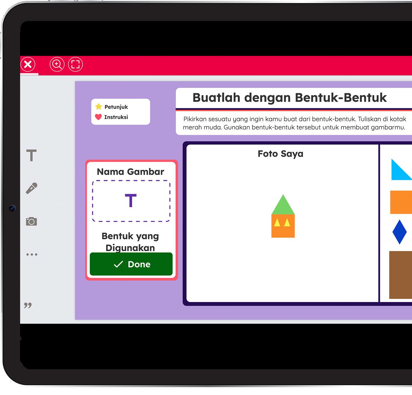 Dengan alat foto, siswa dapat memotret dan membagikan pencapaian belajarnya, paling cocok dengan kamera depan dan belakang iPad yang mudah digunakan.
