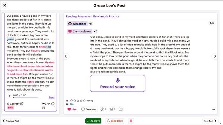 Students are prompted to record themselves reading independently, giving teachers more time back to target support.