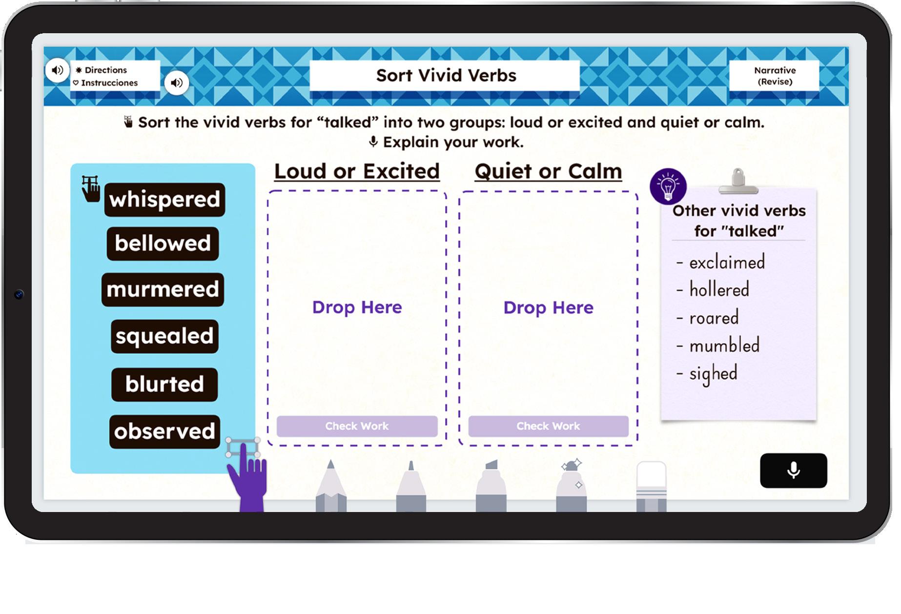 • Creative Canvas tools help students draft, revise, and reflect on their writing
