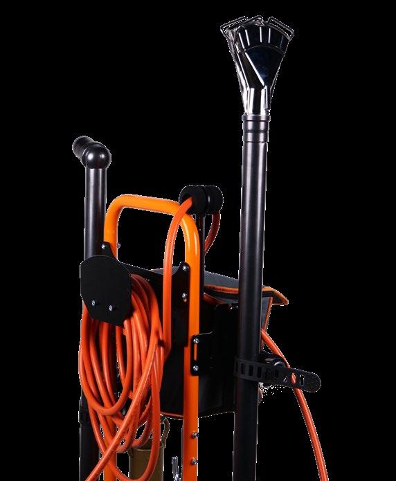 The 750 trolley has been developed to support up to 40kg full gas bottle. It has been specially equipped with hooks to carry your shrink guns with extensions, such as the Ripack 3000+, and to roll up your gas hose for added safety. Its design offers maximum ergonomics thanks to its additional extension supports and hooks. The 750 trolley is also equipped with special wheels so you can take it easily over any terrain. The removable storage bag and guide mast provide comfortable working and protect your equipment.