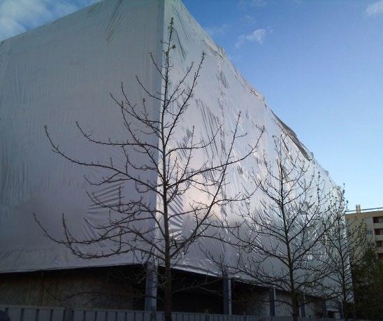 To ensure a good hold of the film during transport or outdoor storage, it is essential to belt the protection with a flexible, robust and nonaggressive textile strap.