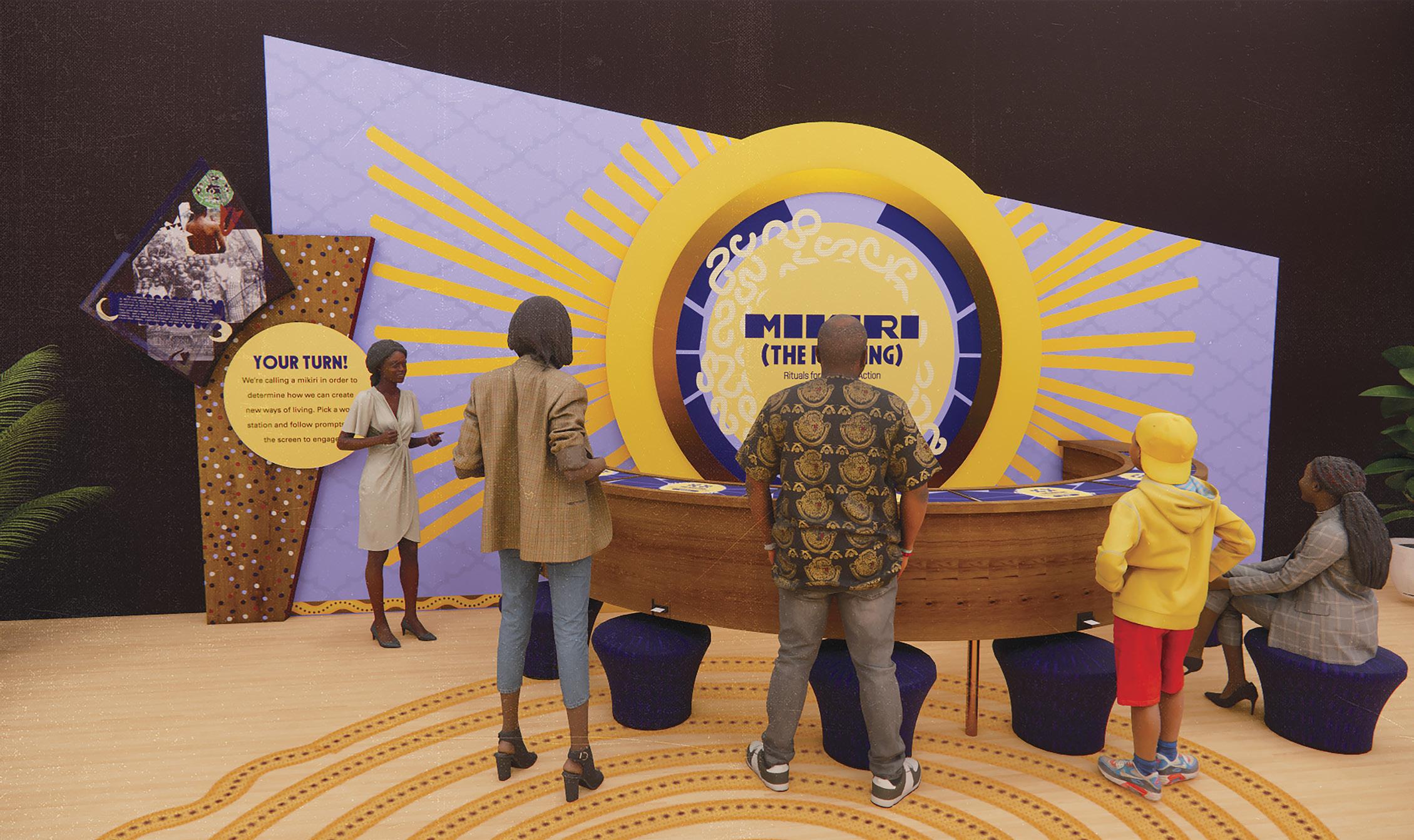Figure 6. Final design proposal by Team Voice, featuring a seven-level wayfinding system using music-inspired themes and bold, colorful illustrations to convey shared community values. (Image courtesy of the designers)