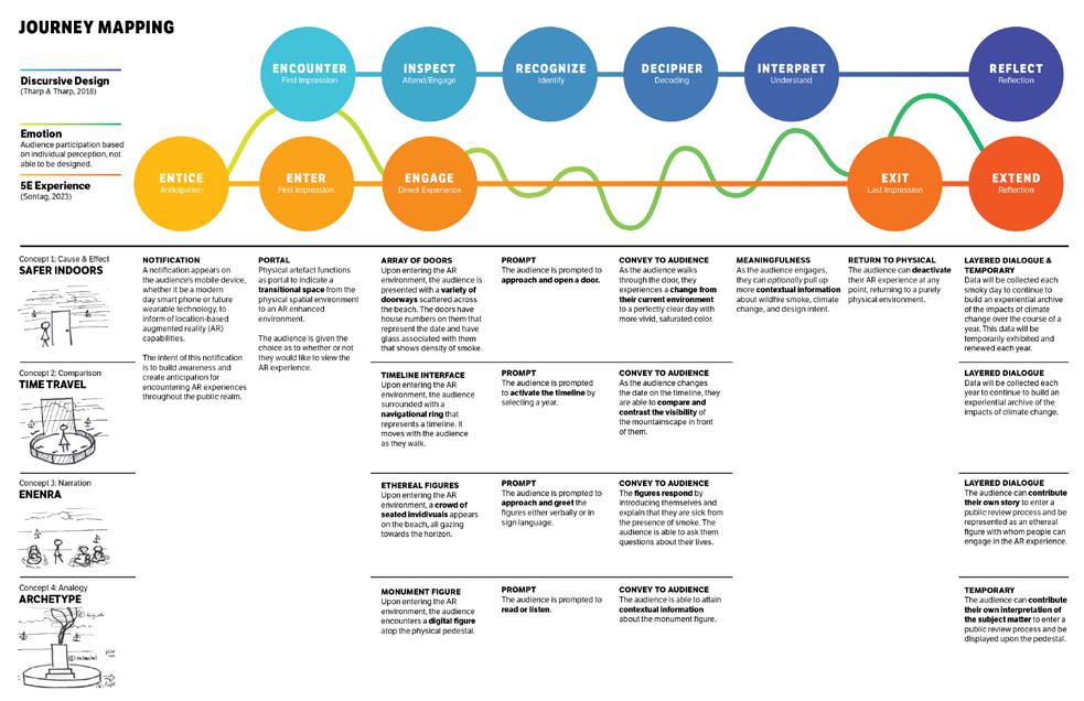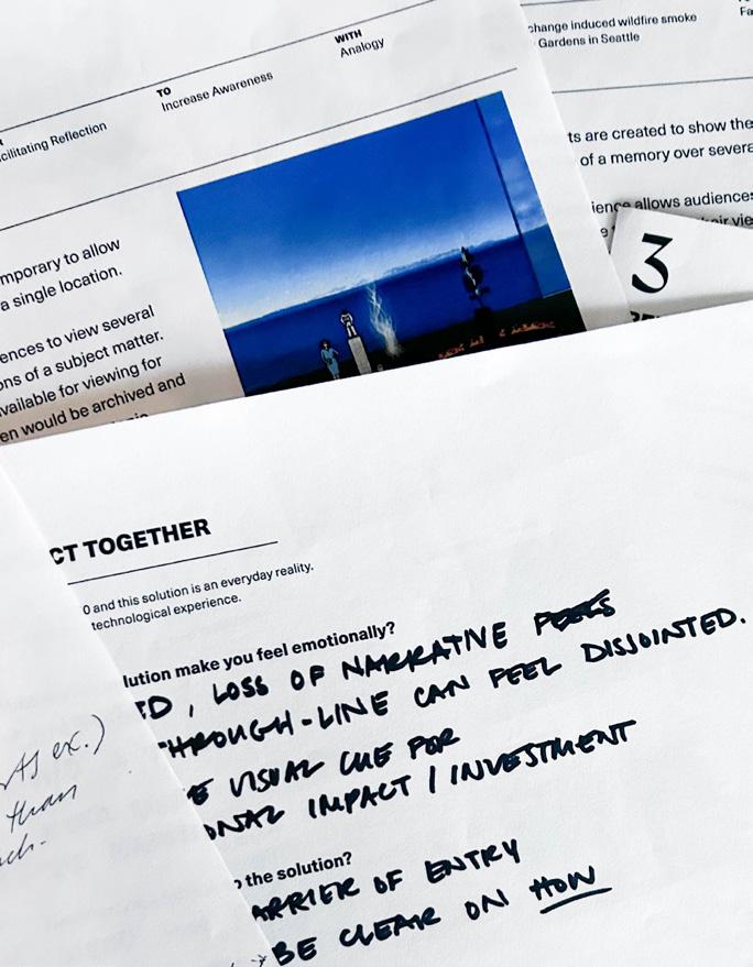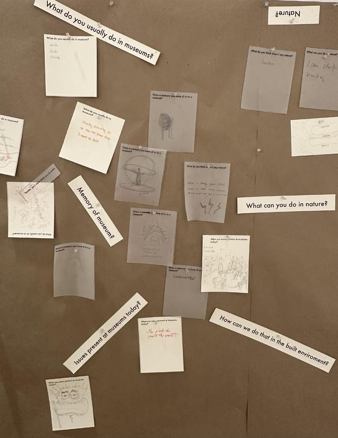 Students were introduced to and practiced a range of research methods rooted in human-centered design, including site analysis, user journey mapping, persona development, interviews, and surveys. These tools enabled students to gather both observational and selfreported data about how the space was used, who the users were, and what values and stories were embedded in the community. By combining direct engagement with users and contextual analysis, students developed nuanced insights into the physical and social dimensions of the site.