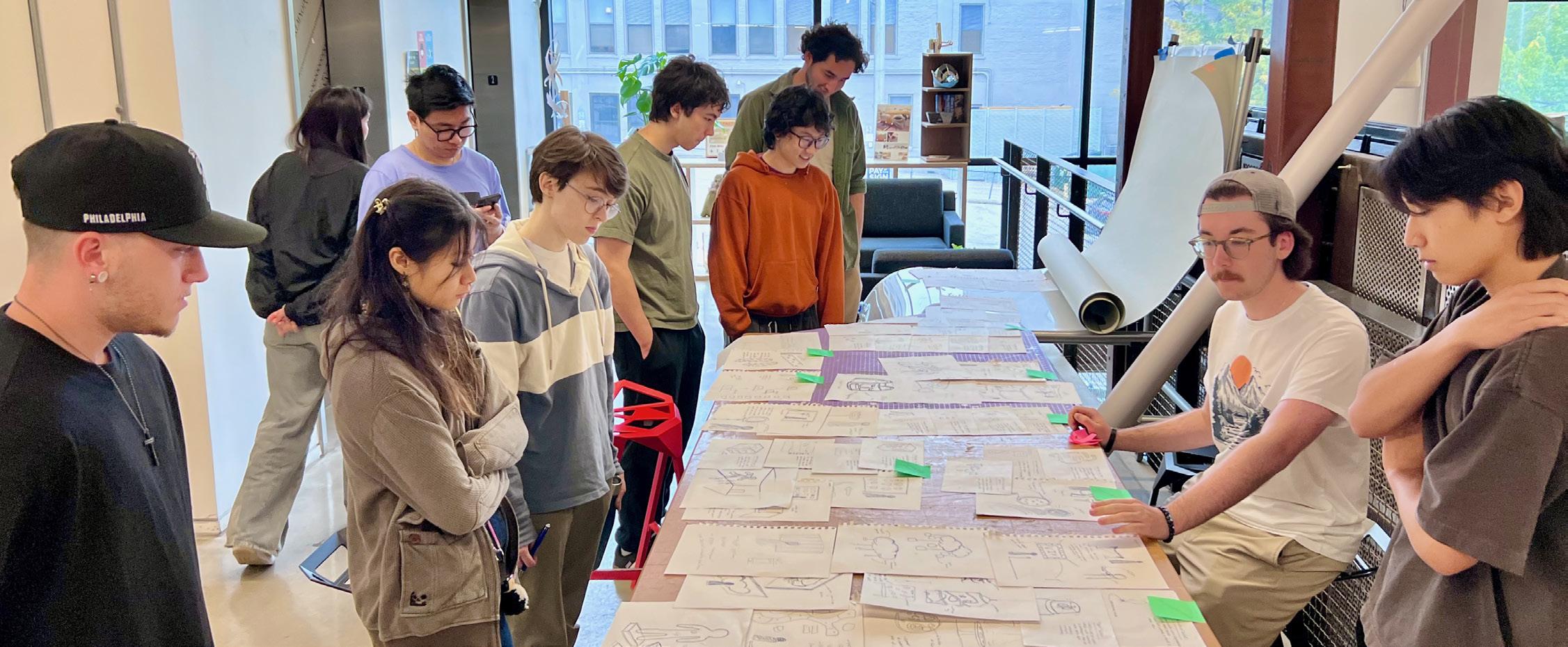 Figure 3. Students presenting initial design explorations during a studio critique session. (Photo by author)