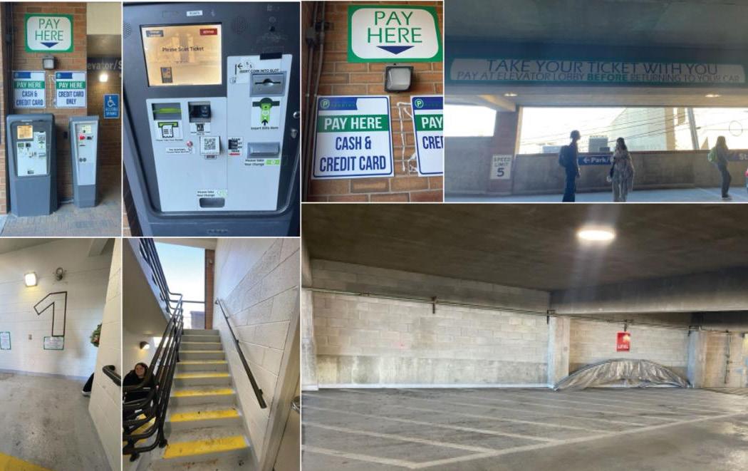 Figure 2. Site visit photos of the Fraser Street Parking Garage taken during the initial research phase. (Photos by students)