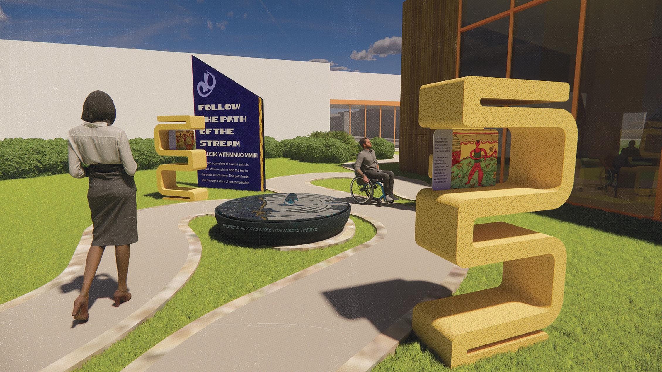 Working in teams, students applied human-centered design methodologies—including site analysis, interviews, surveys, user journey mapping, and persona development—to understand the physical and emotional dynamics of the space. Their process was iterative and collaborative, informed by community feedback and local narratives. The project emphasized accessibility, identity, and sustainability, encouraging students to consider design as both visual communication and social infrastructure.