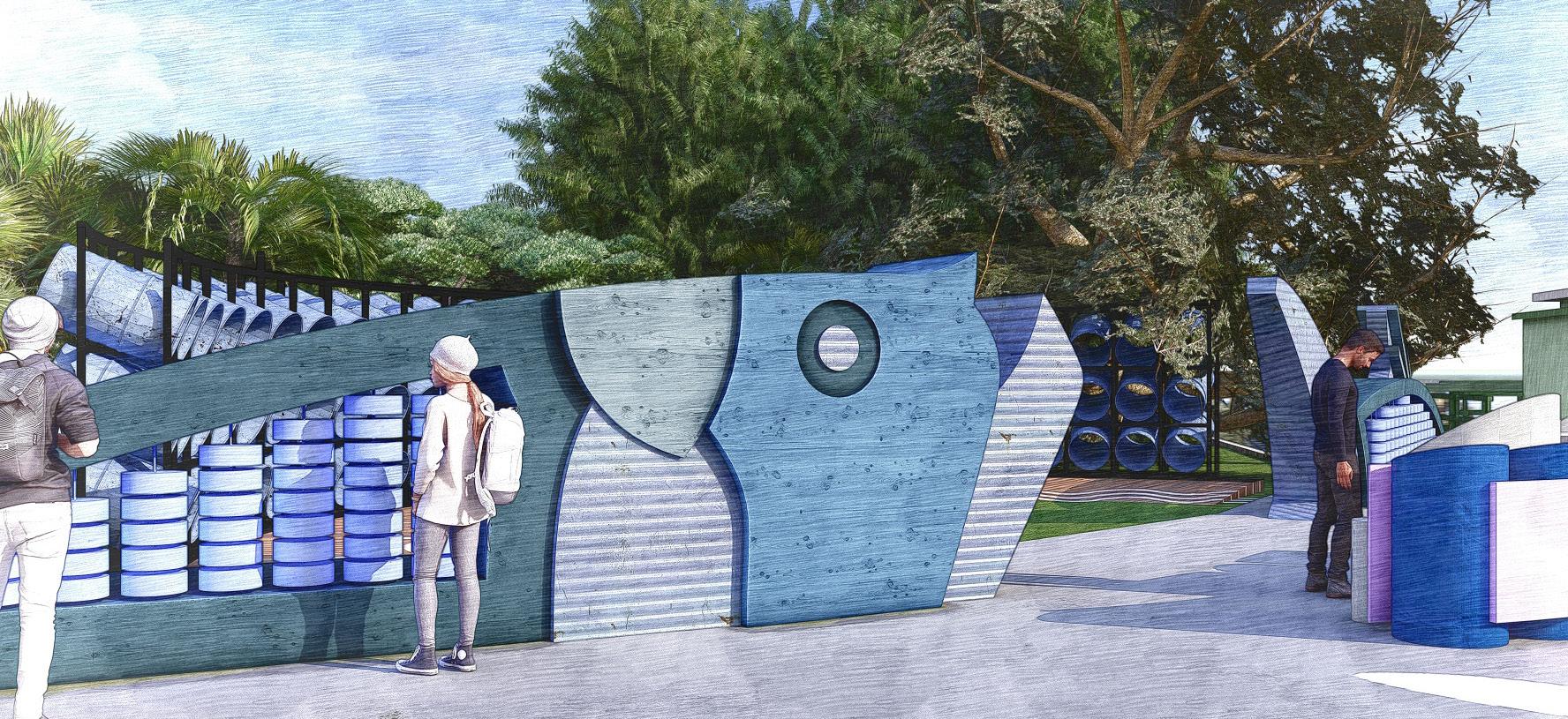 This project culminated in four distinct, researchdriven design proposals that reimagine the Fraser Street Parking Garage as a site for cultural connection, environmental awareness, and community storytelling. Each team demonstrated a unique conceptual direction informed by field research, community input, and human-centered design methodologies. Below, each team’s concept and contribution is described in detail.