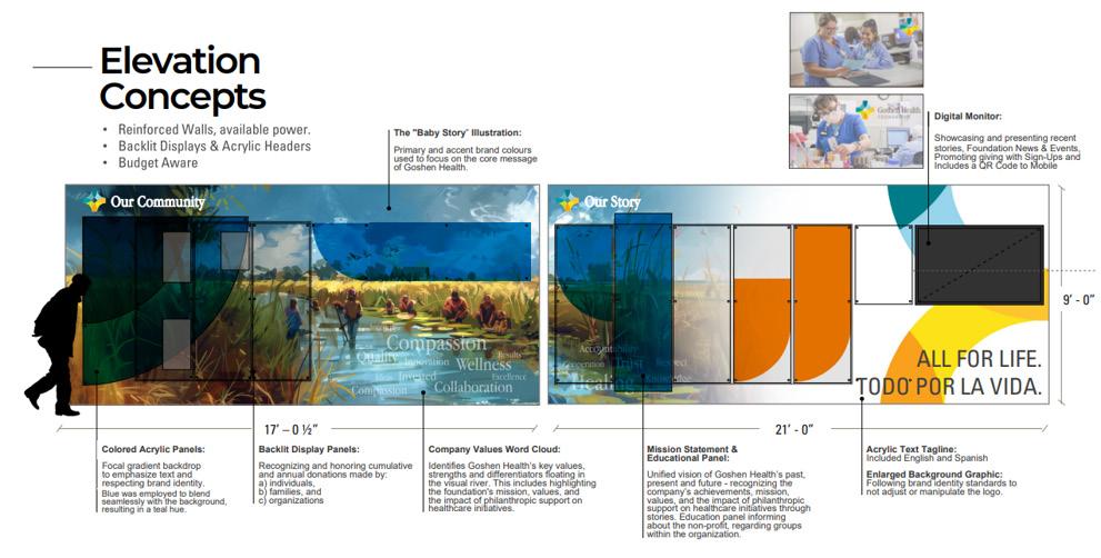 Each team developed a distinct concept and visual strategy that reflected shared community values. The final outcomes included high-fidelity mockups, 3D simulations, process books, and public presentations, all of which were showcased to local stakeholders and exhibited at a regional sustainability event. Community members responded positively to the designs, highlighting their cultural relevance and visual impact.