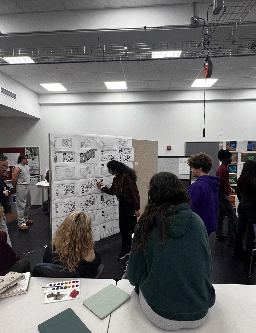 Figure 5. Progress wall used during group discussions to visualize design development and organize peer critique. (Photo by author)