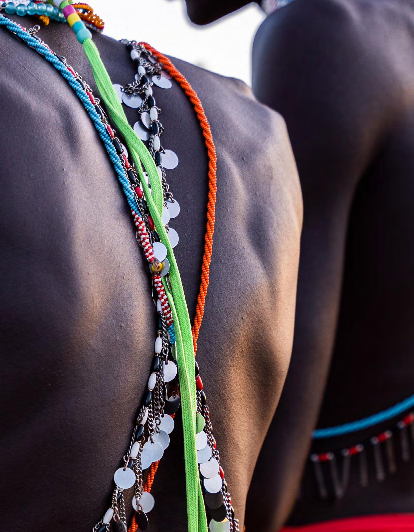 • After circumcision, young men received gifts, food as well as a bow and arrows. The mother wears a distinctive beaded necklace, symbolizing her son’s transition to a moran. Morans defend livestock and strategize raids in rival villages to acquire animals.
