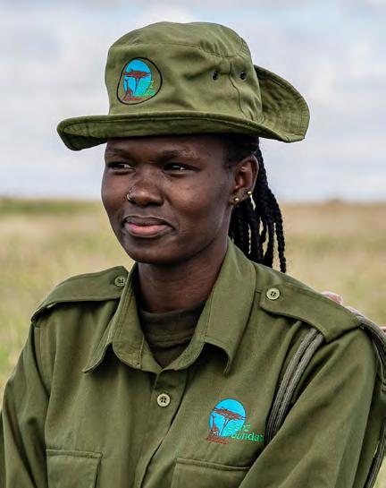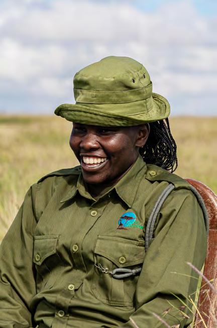 At 30, the mother-of-two heard about the recruitment at Segera from her local community, it lit a spark within her, and she applied, undertaking an intense 10-day selection process. An intensive sixmonth training period followed. The first 3 months at Segera were spent learning a diverse set of skills - encompassing drills, defense, first aid, intelligence gathering, communication, map reading, mission planning, and meditation.