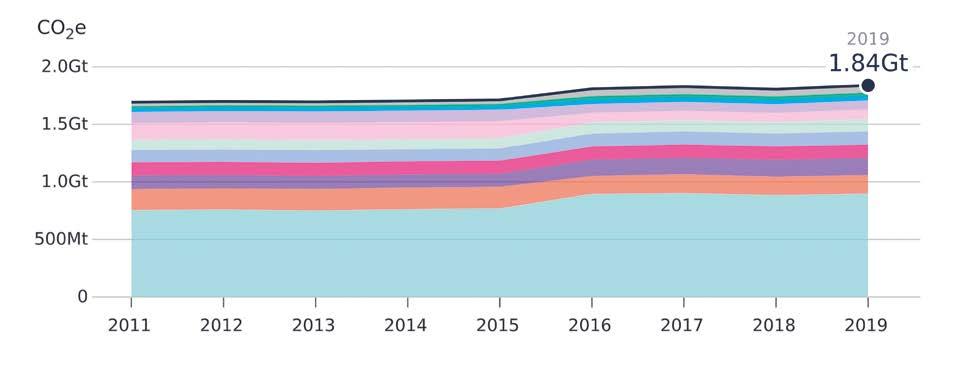 A atual interligação entre mudança climática, perda de biodiversidade, poluição e consumo de recursos naturais pode pôr seriamente em risco os nossos modos de vida e a disponibilidade de alimentos saudáveis, exacerbando os conflitos sociais (wef 2023). Espera-se que os efeitos da mudança climática em toda a Ibero-América provoquem um aumento das temperaturas e secas mais graves. Isto comportará perdas substanciais de produção agrícola, modificações das estações de cultivo, bem como alterações dos padrões de produção pesqueira e agrícola (AR6 2021). No entanto, os próprios sistemas alimentares, que sofrem as consequências da mudança climática, são responsáveis por, pelo menos, 30 % das emissões globais de gases com efeito de estufa (gee) que a provocam. Este número inclui quase 3 GtCO2e provenientes dos sistemas alimentares ibero-americanos. Destas emissões, 45 % são originadas pela produção animal e agricultura, enquanto que 38 % resultam da utilização e alteração do uso do solo (desflorestação, novos terrenos de cultivo e outros). Em termos relativos, nas últimas três décadas as emissões que mais aumentaram foram as decorrentes do processamento, transporte e venda de alimentos, chegando a duplicar nesse período (edgar 2022). Isto reflete a evolução dos sistemas alimentares ibero-americanos, que deixaram de ser tradicionais —com cadeias de produção e consumo curtas— para passarem a ser modernos, com uma maior quantidade de alimentos processados, que percorrem uma média de 3 000 km e são armazenados, refrigerados e vendidos em grandes lojas (fao 2018).